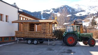 Beim Kinderblochziehen gibt es zwei Wagen, die zum Einsatz kommen. Der Krämerwagen und die Almhütte sorgen bei dem Freiluftspektakel der Kleinen für das leibliche Wohl. Hier werden dann etwas ältere Burschen eingesetzt. Auch einige fesche Ausschank-Damen können in den Wagen gesichtet werden. Neugierig? Überzeugt euch selbst davon!