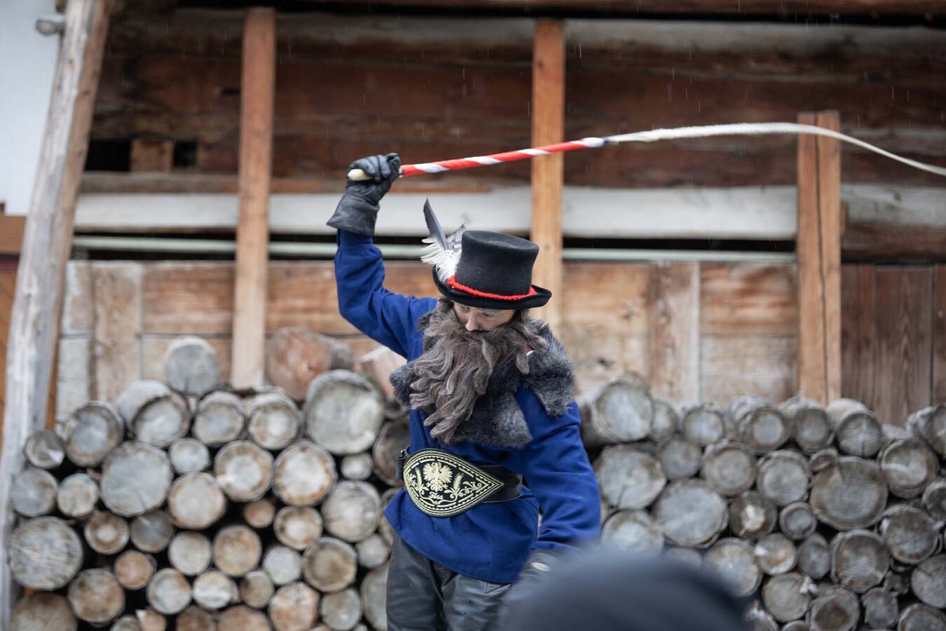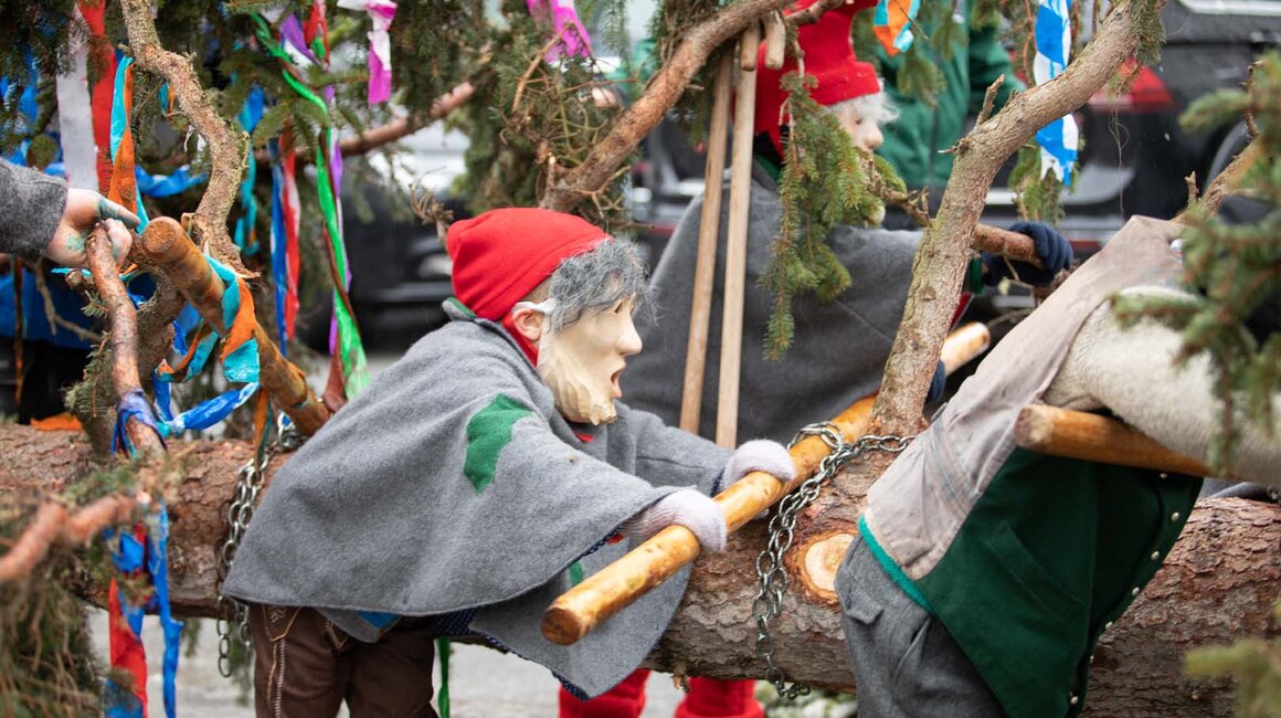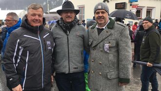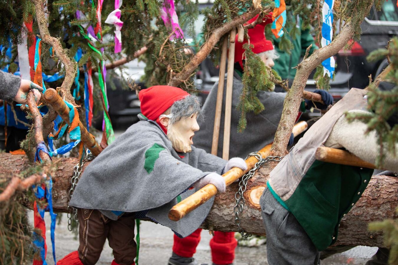 Der Fisser Bürgermeister Markus Pale (rechts im Bild) ist schon ein echter Profi in Sachen Blochbaumversteigerung und hat wieder einmal alles gegeben. So konnte der Bloch beim heurigen Kinderblochziehen für die stolze Summe von 6.300 Euro versteigert werden.
