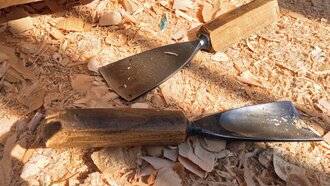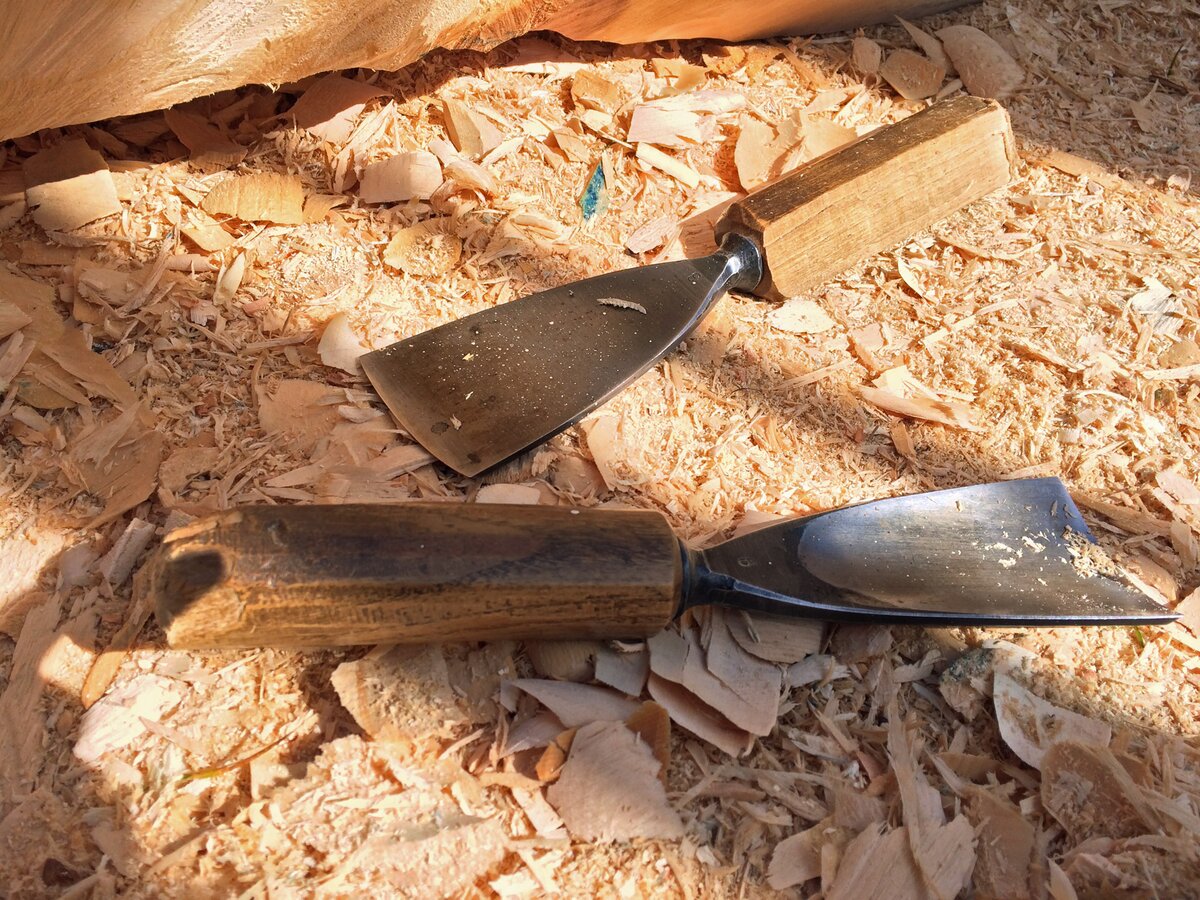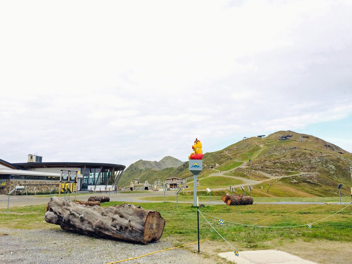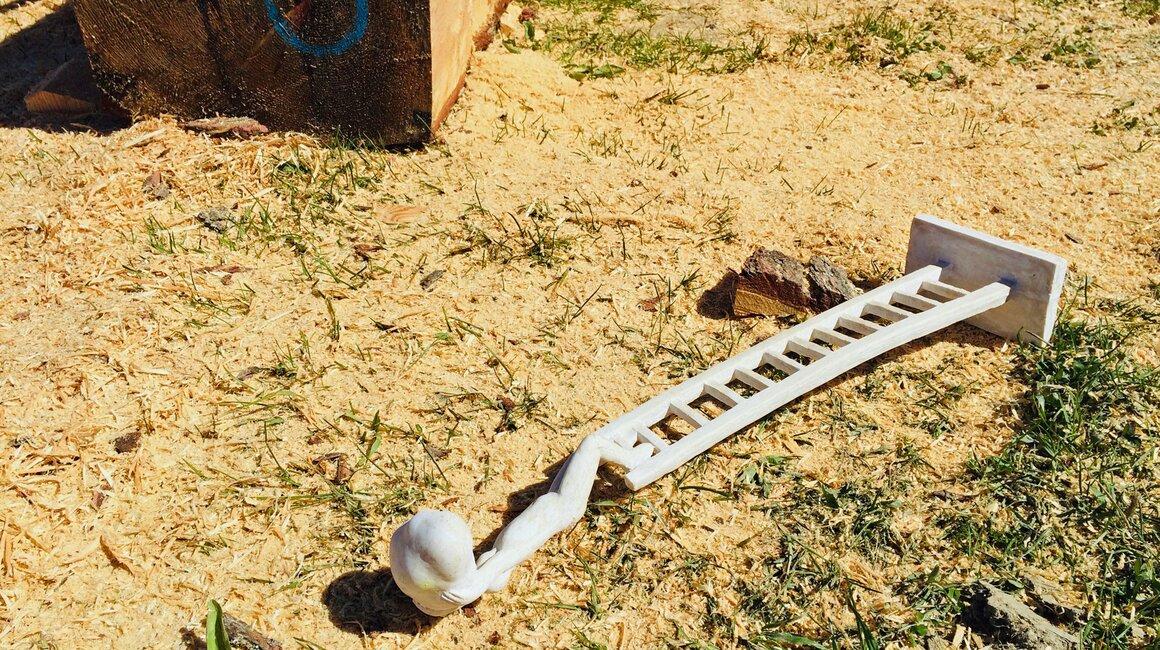 Drei Künstler arbeiteten mit Stein, drei mit Metall und neun weitere mit Holz. Der Materialmix sorgte für die unterschiedlichsten Kreationen. Das Holz stammt dabei unmittelbar aus Serfaus-Fiss-Ladis. Mit LKWs wurden die Lärchen- und Zirbenstämme an den Aktionsort transportiert. Nummern dienten der Orientierung. Eine so große Veranstaltung braucht schließlich Ordnung. Auf die Wünsche der Bildhauer bezüglich der Holz- oder Steinart und Größe wurde selbstverständlich eingegangen. Siegfried Krismer aus Fiss erzählte mir, dass er Zirbenholz bevorzugt: „Zirbe ist ein weiches Nadelholz und lässt sich besser schnitzen als die Lärche“. Aus dem Holzrohling kreierte er bei Kunst am Berg 2019 eine bekannte Figur der Tiroler Fasnacht (genauer gesagt des Fisser Blochziehens): den Bajatzl. Sein Werk ist übrigens mein Favorit. Schon der Künstler selbst ist ein wahrer Charakterkopf. Die "Maschgerer in Zwergenformat" können übrigens beim Kinderblochziehen am 02.02.2020 begutachtet werden. Vielleicht stammt ja die ein oder andere Larve von jenem Fisser Bildhauer?