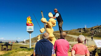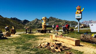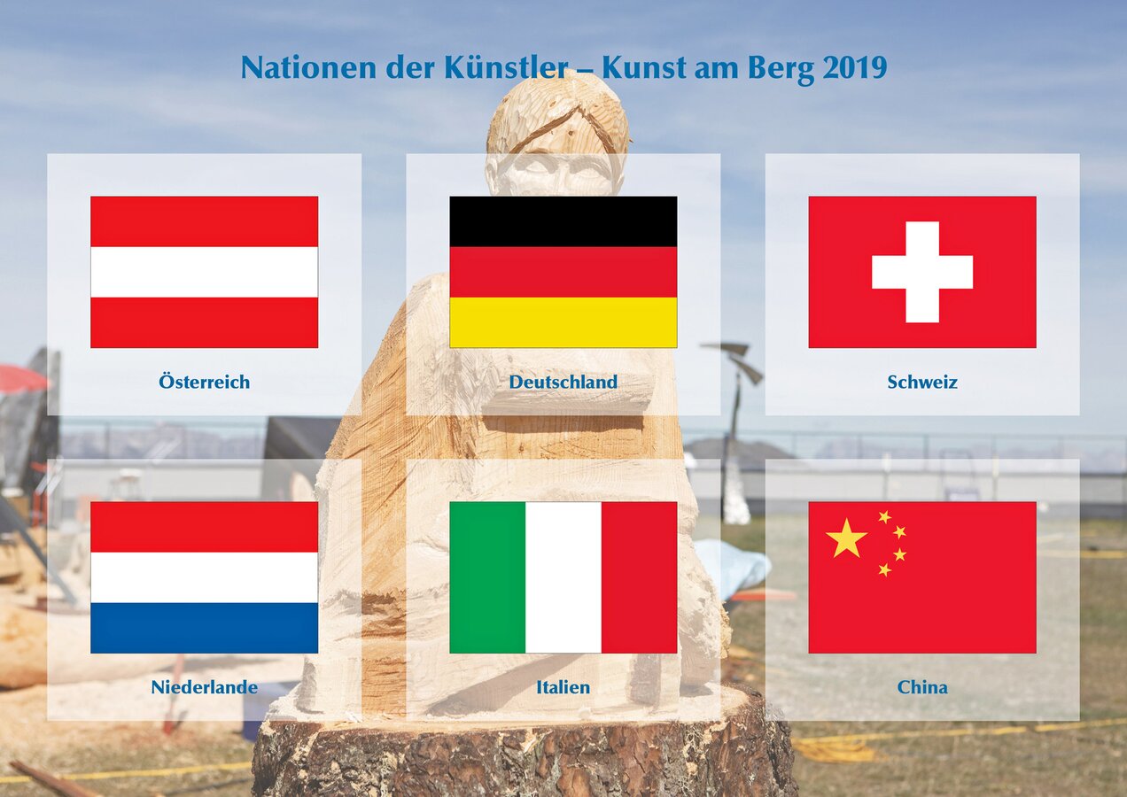 Insgesamt stammen die Teilnehmer von Kunst am Berg 2019 aus sechs Nationen. Glück im Unglück: Der Künstler aus China durfte bedauerlicherweise seine Motorsäge am Flughafen nicht mitnehmen. Glücklicherweise bekam er aber von den Bergbahnen umgehend ein perfektes Leihgerät gestellt.