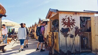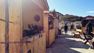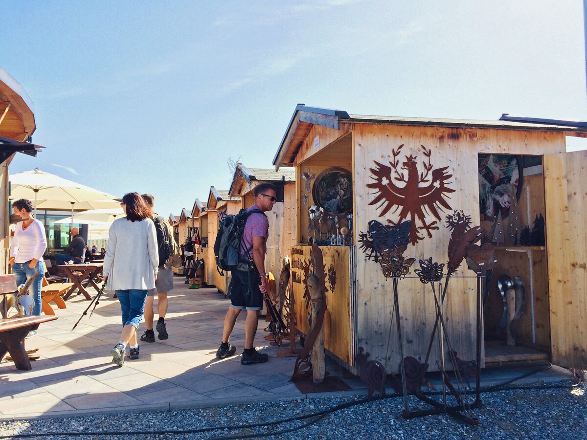Zahlreiche Hütten vor dem Bergrestaurant bieten allerlei Kunsthandwerk an. Sie laden zum Bummeln inmitten der traumhaften Bergkulisse ein. Souvenirjäger, die auf der Suche nach dem besonderen Geschenk sind, sind hier genau richtig!
