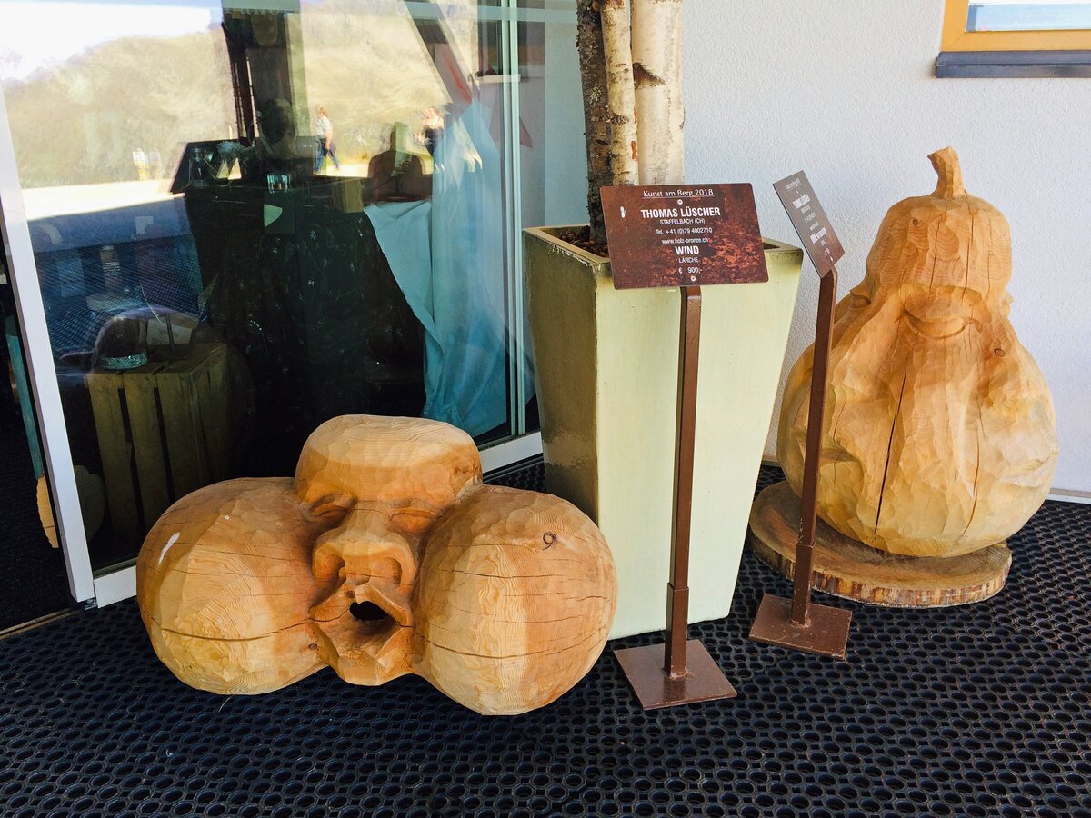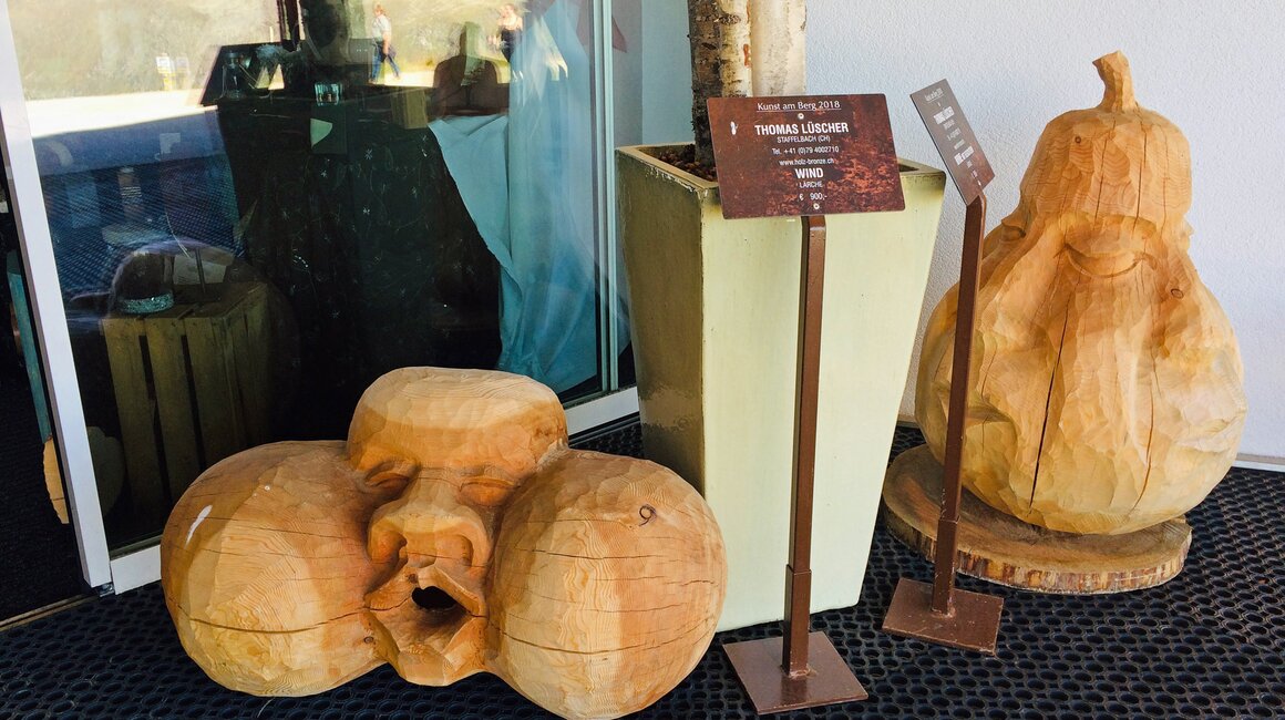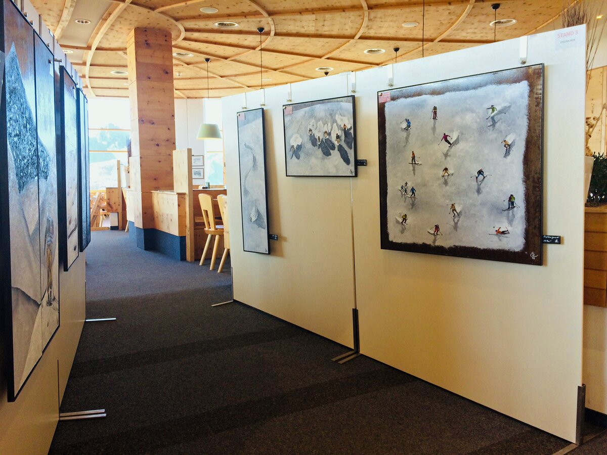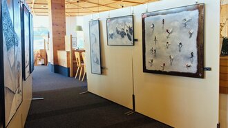 Während die Bildhauer bereits seit zwei Wochen eifrig an ihren Arbeiten werkelten, wurde das Bergrestaurant kurzerhand zur Galerie umfunktioniert. Auf Stellwänden geben dieses Jahr fünf Künstler seit 14.09. ihre Werke zum Besten und bieten diese auch zum Verkauf an.
