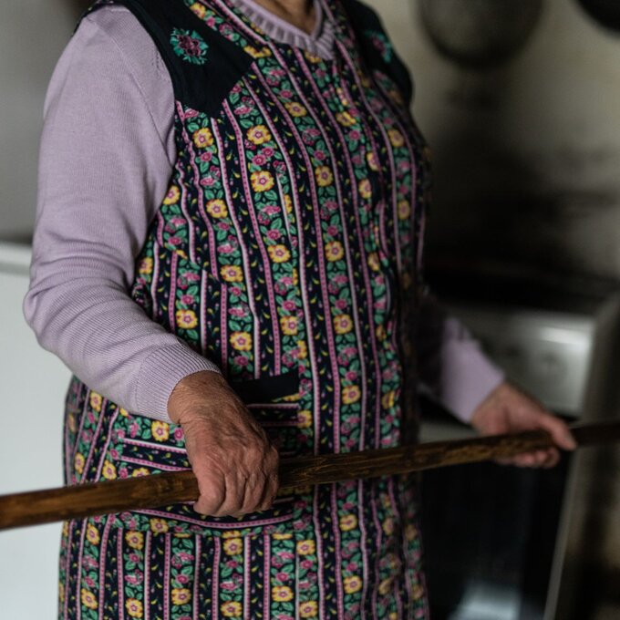 "Damit wir Feuer machen können, nutzen wir eine lange Ofenschaufel, darauf müssen die Holzscheite schön gestapelt werden. Das muss man können.“