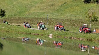 Damit auch jedes der herausgeputzten Fahrzeuge gesehen wird, gibt es während des Treffens Ausflugsfahrten in alle drei Orte am Sonnenplateau. Natürlich darf die Runde durch das Dorf nicht fehlen. Allerdings ist dies nicht so einfach wie mit den modernen Fahrzeugen, die wir mittlerweile gewohnt sind. Das ein oder andere Gerät muss noch per Hand aufgezogen werden und erfordert einiges an Muskelkraft, um anzuspringen. Ist der Trupp erst einmal unterwegs, ist er nicht mehr zu überhören und kündigt die Teilnehmer schon im Vorfeld an.