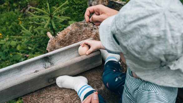 „Themenwege“ – das klingt für dich langweilig? Dann warst du noch nicht in Serfaus-Fiss-Ladis. Wir zwei Erwachsenen hatten mindestens genauso viel Spaß wie unser Kleiner. Unser absoluter Favorit: der Holzkugelweg. Du wanderst hier ganz gemütlich ins Tal hinab und darfst nebenbei unzählige kreative Kugelbahnen bespielen.