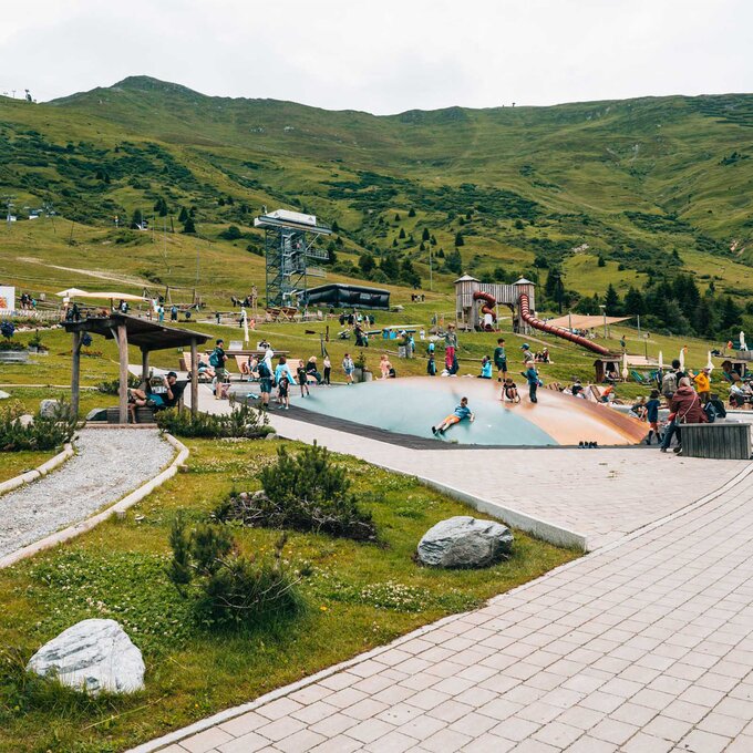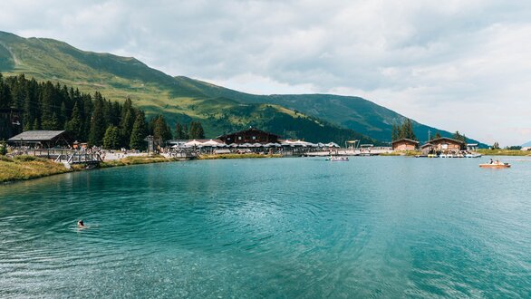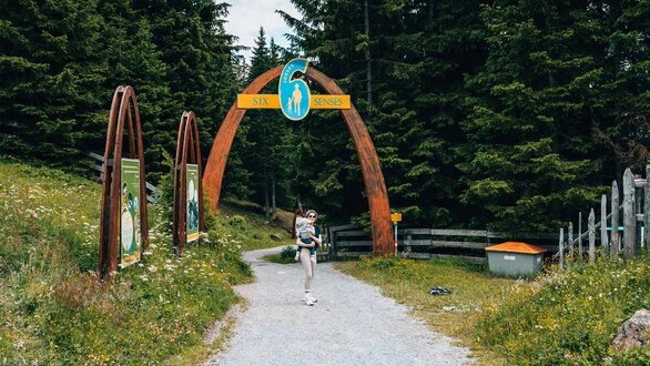 Ebenfalls richtig gut gefallen hat uns der Six-Senses-Weg. Wie es der Name schon verrät, begibst du dich hier auf einen Genussweg, der auf kreative Art und Weise die Sinne fordert. Der Weg verläuft ebenfalls leicht bergab, sodass er auch für Familien mit Kindern bestens geeignet ist. Auf dem Weg kommst du außerdem bei einem der schönsten Plätze in Serfaus-Fiss-Ladis vorbei, dem traumhaften Högsee, der an heißen Sommertagen zum Planschen einlädt.