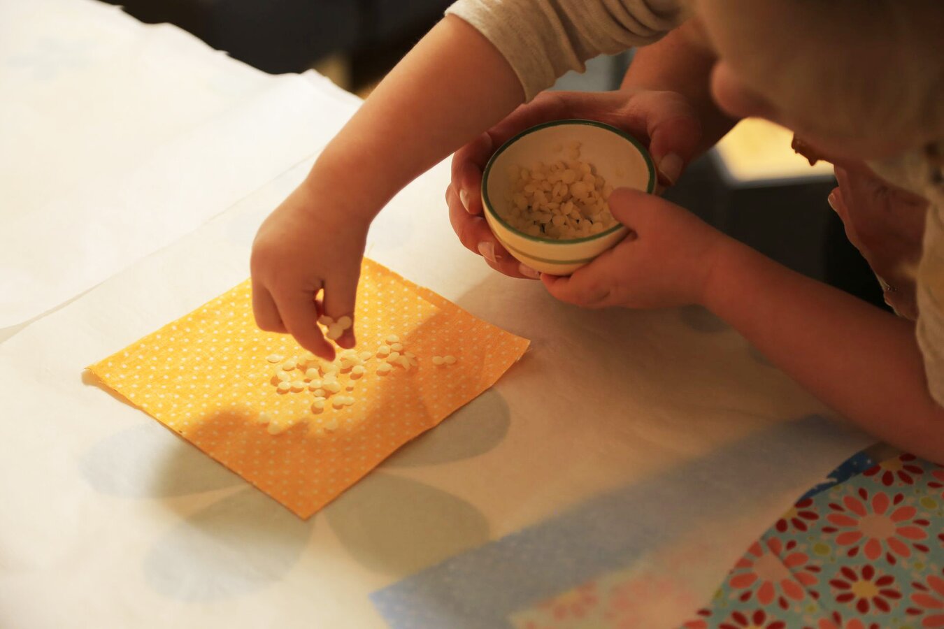 Los geht´s! Mit unserer Schritt-für-Schritt-Anleitung kannst du ganz leicht Bienenwachstücher selbst herstellen und hilfst damit unserer Umwelt. Basteln ist für uns Familienzeit und da hilft meine Tochter Antonia gerne mit.