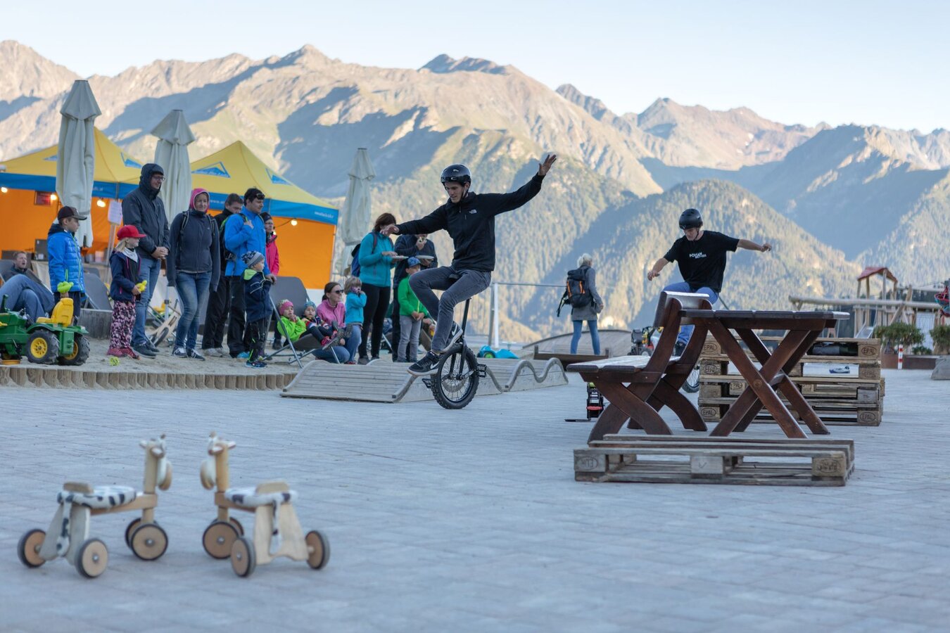 Ich finde: Magic-Moments und Adrenalinkicks machen HUNGRIG. Praktisch, dass das Familienevent direkt vor den Toren eines Bergrestaurants stattfindet! Über drei Stunden kocht das Bergrestaurant für seine Gäste aus. Tipp: Ich empfehle dir, vorab schon mal einen Tisch zu reservieren, damit du entspannt einkehren kannst. Das Event und das Restaurant sind nämlich sehr beliebt. Planung ist hier also die halbe Miete. Drinnen oder draußen Platz nehmen? Wenn abends die Luft auf über 1.800 m lau ist, ist ein Platz auf der Bergterrasse einfach herrlich. Mama und Papa haben dort zudem ihren Nachwuchs immer im Blick.