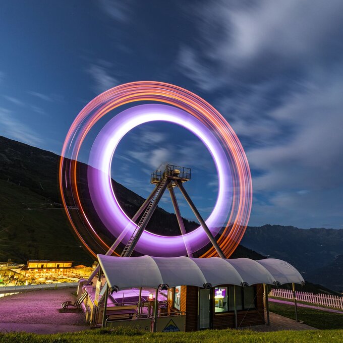 Mit der Gondel rauf und mit der Gondel wieder runter? Kannst du, musst du aber nicht. Viel lustiger ist meiner Meinung nach ein 2,2 km langer Ride mit der gelben SOMMERRODELBAHN Fisser Flitzer durch Gruseltunnel und Piratenschiff hinunter ins Dorf. Oh ja, auch der Sommer-Funpark Fiss ist während dem Erlebnisabend Fiss in Betrieb. Aus Erfahrung kann ich dir sagen: Hier steht nicht nur Fun drauf, sondern da steckt auch jede Menge Fun drin. Und abends bei DÄMMERSTIMMUNG macht’s irgendwie noch mehr Spaß, aufzubleiben und am Berg Neues auszuprobieren.