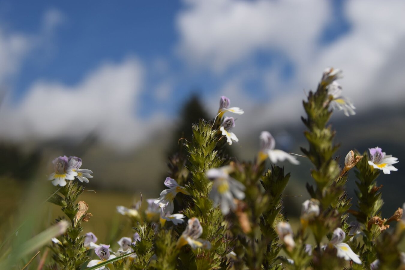 “Goti, Beerla!“ Die Kinderaugen leuchten fröhlich als sie die Waldbeeren und prächtigen Blumen entdeckt. Natürlich lassen wir die Pflanzen stehen, da viele streng geschützt sind und in der freien Natur nicht gesammelt oder beschädigt werden dürfen. Bereits am Ende des Waldes offenbart sich eine eindrucksvolle Landschaft und auch das Ziel können wir schon sehen. Je weiter wir hinauskommen, desto mehr öffnet sich der wunderbare Blick in Richtung Fiss und Serfaus. An der Abzweigung bei dem Aussichtspunkt beschließen wir eine kurze Rast zu halten und dann noch weiter Richtung Waldbahn nach Fiss zu wandern, wo man wagemutige Downhiller beim Springen im Bikepark Serfaus-Fiss-Ladis beobachten kann. 1, 2, 3, looos! Antonia hat sichtlich Spaß daran und klatscht nach jedem Sprung.