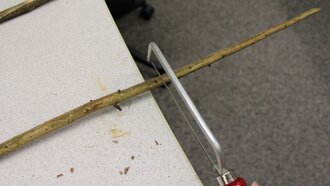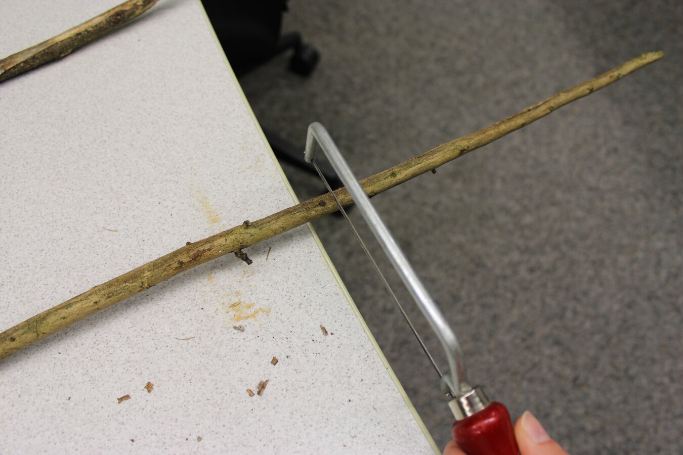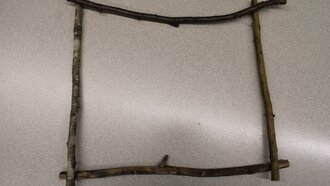 Lege die vier Stöcke zu einem Rechteck zusammen. Falls du keine passenden Stöcke findest, könnt ihr sie mit einer Säge zurechtsägen. Binde die Enden mit einer Schnur fest, sodass ein stabiler Rahmen entsteht.