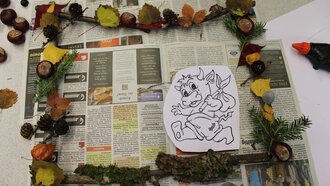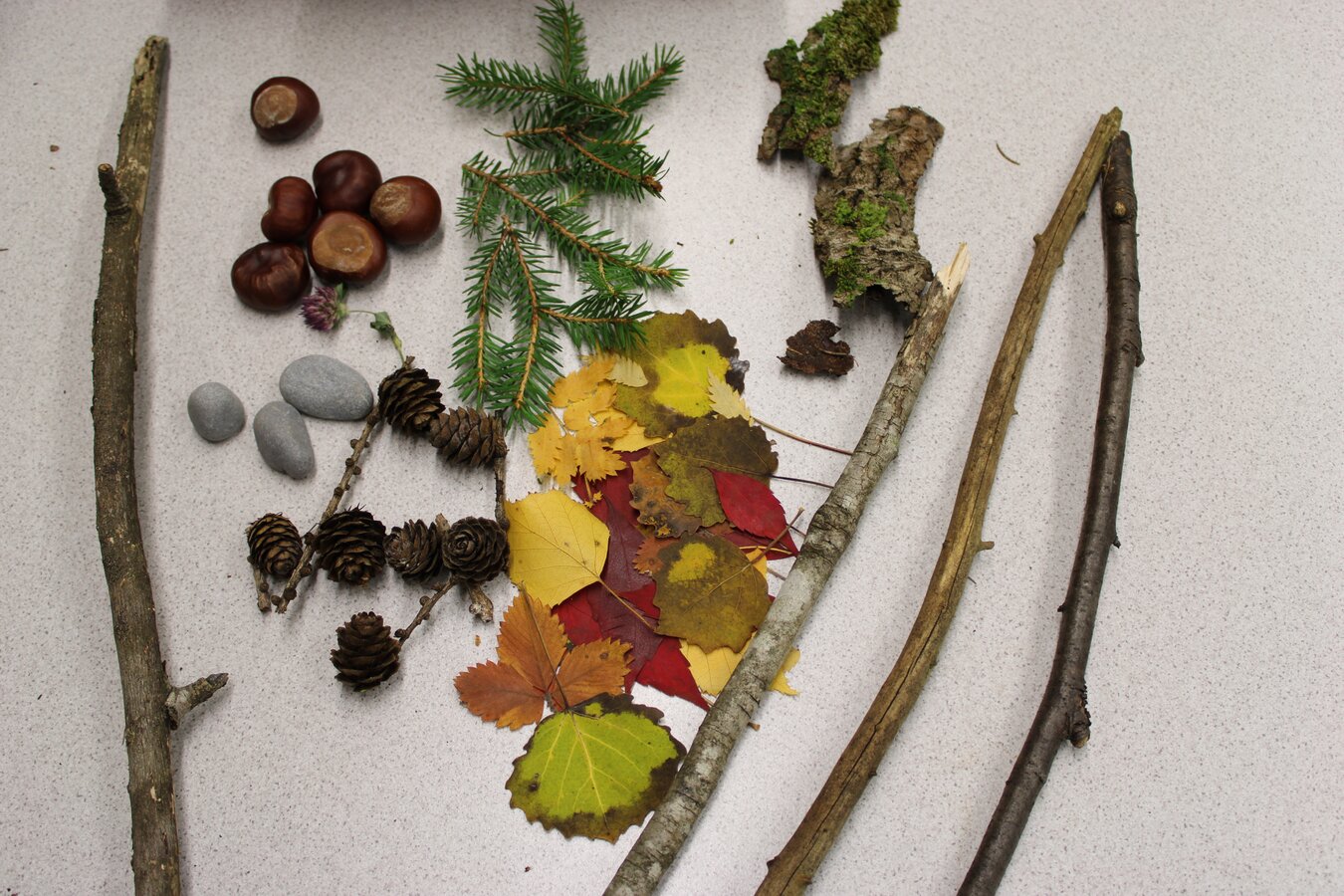 Mache mit deinen Eltern oder Freunden einen Spaziergang und sammle, was der Herbst zu bieten hat – Blätter, Zapfen, Kastanien, kleine Zweige, Rinde oder Moos.