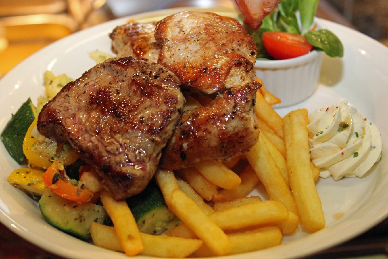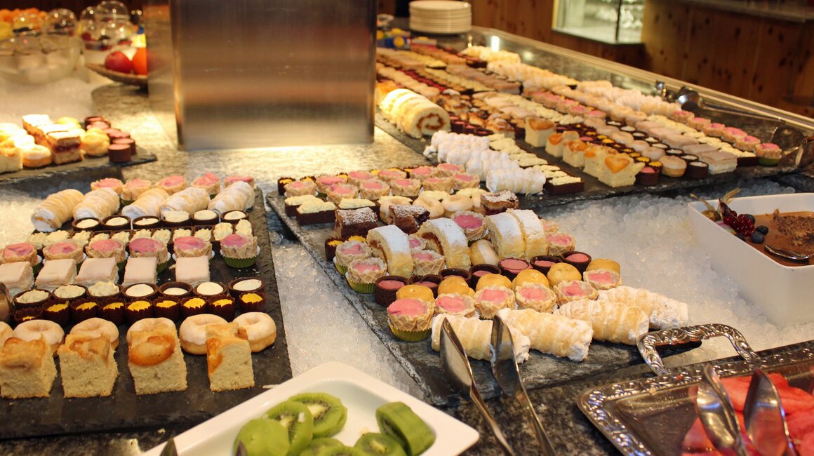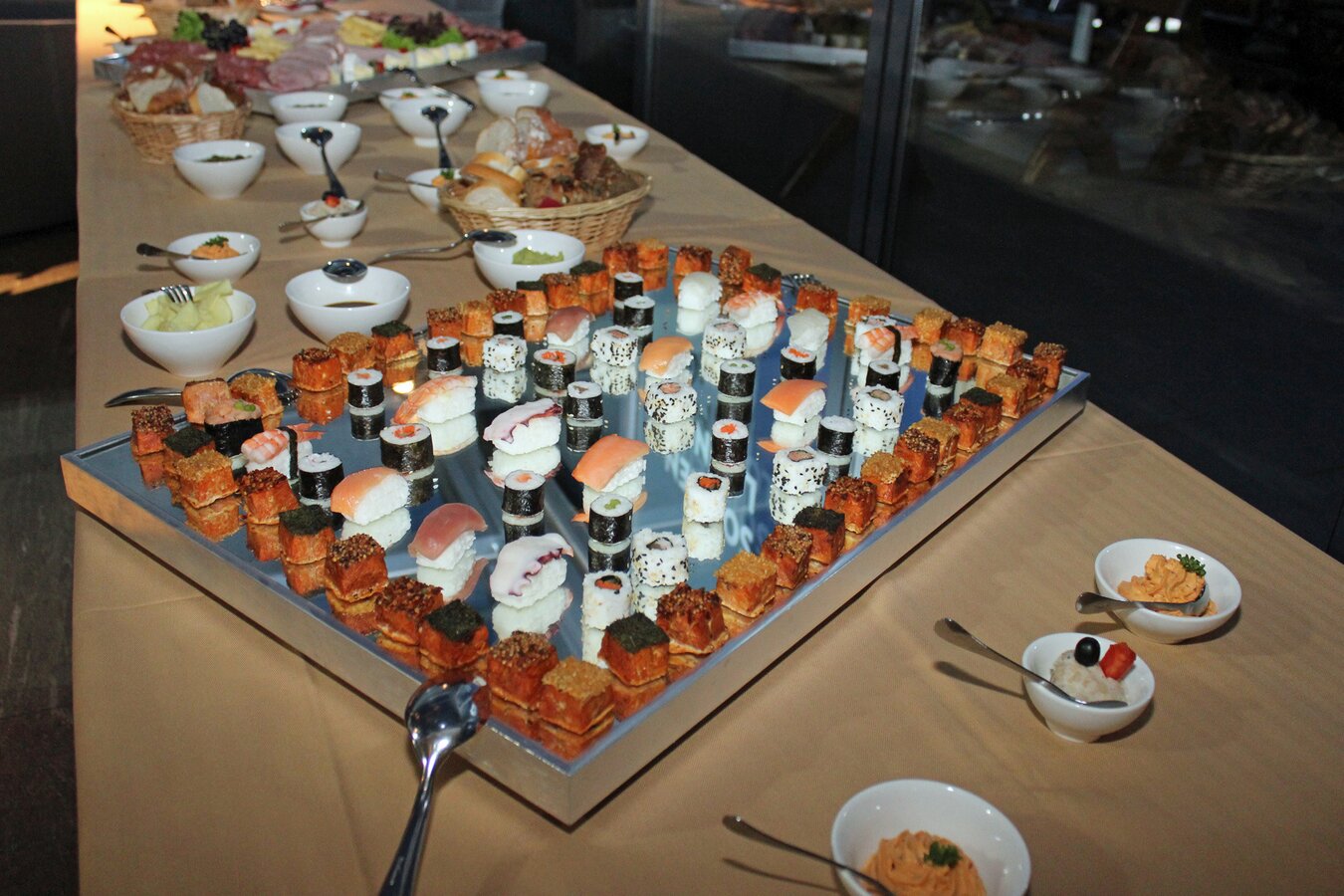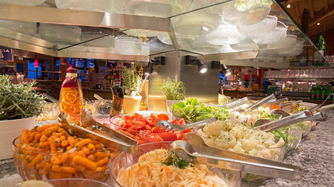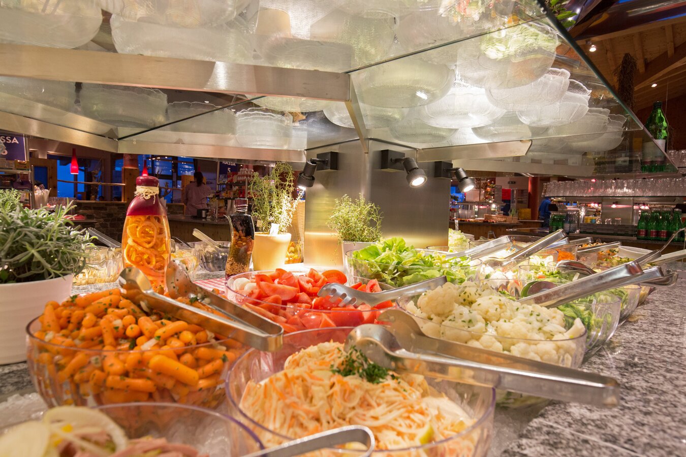 Wir holen uns aber zuerst mal unser Essen. Angeboten wird eine Vielfalt an Speisen. Verschiedene Nudelvariationen, frische Pizzen aus dem Holzofen, Steaks und sogar Sushi wird von einem Koch frisch zubereitet. Für Kinder gibt es eine große Auswahl an Kindergerichten, ein großes Salatbuffet ist zu sehen und die Köche hinterm Grill bereiten jede Speise frisch vor den Augen der Gäste zu. Wieder ein Highlight, das ganz besonders den Kindern gefällt. Denn wer schaut dem Koch nicht gerne in die Pfanne?