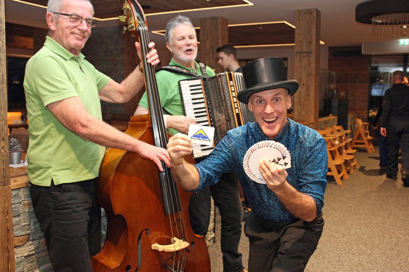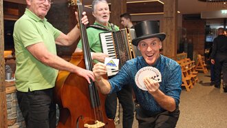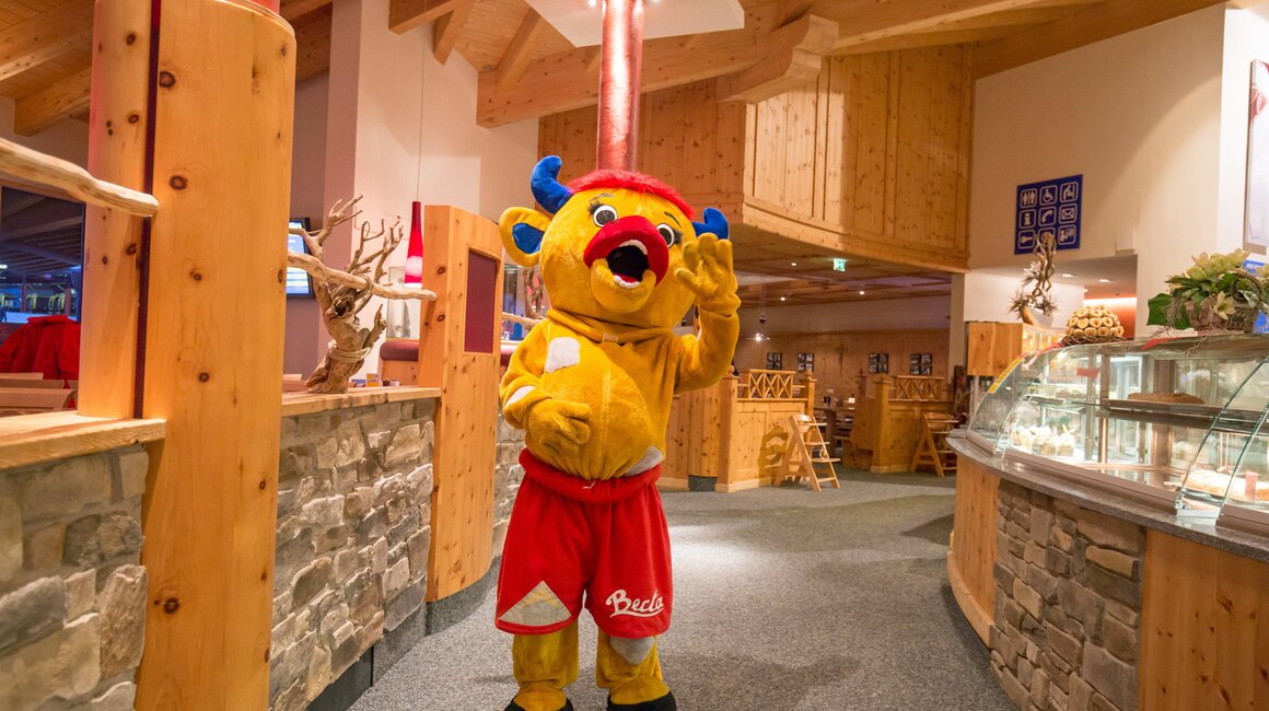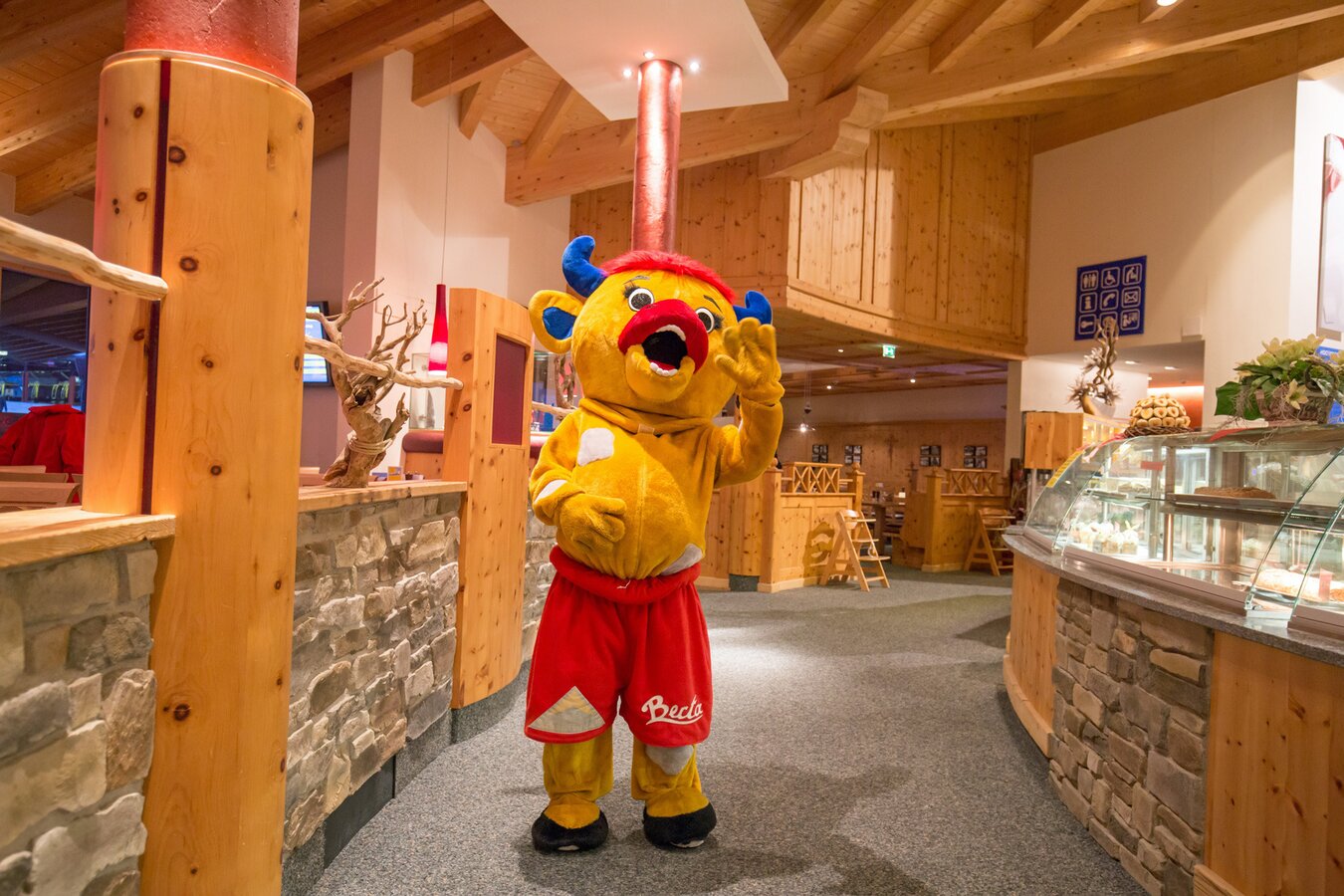Das Restaurant ist angenehm und dezent beleuchtet, richtig stimmig und gediegen. Dazu eine angenehme, aber nicht zu laute Live-Musik. Berta, das Maskottchen, steht im Eingangsbereich und begrüßt die Gäste mit einem „High Five“. Das gefällt vor allem den jüngeren Kindern. Natürlich nimmt sich unsere Berta auch Zeit für Fotos und Selfies. An einem Tisch ist ein Zauberer zu sehen, der die Gäste mit Kartentricks unterhält.