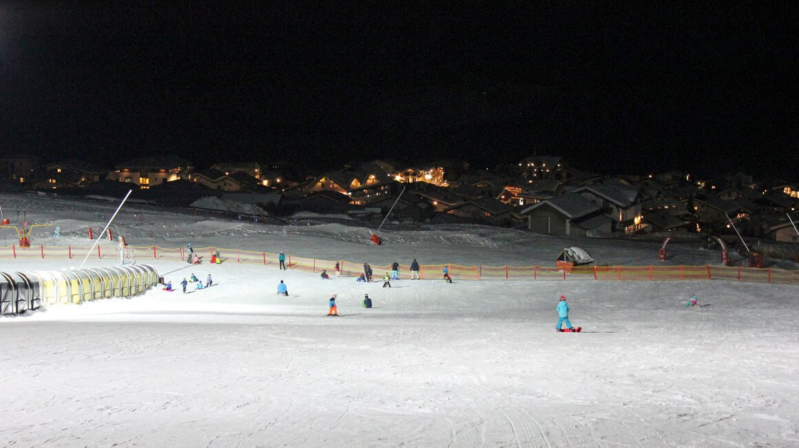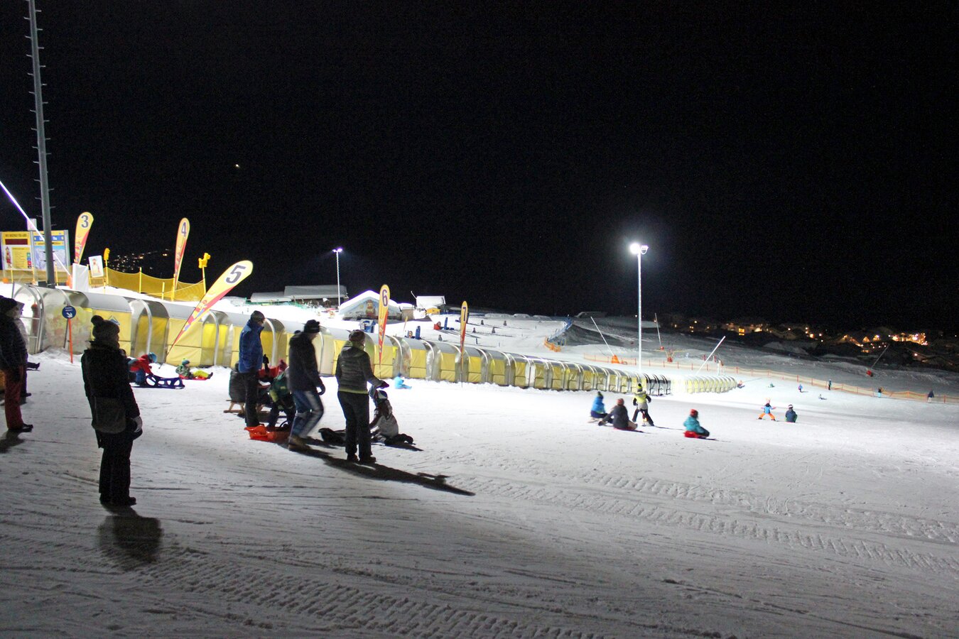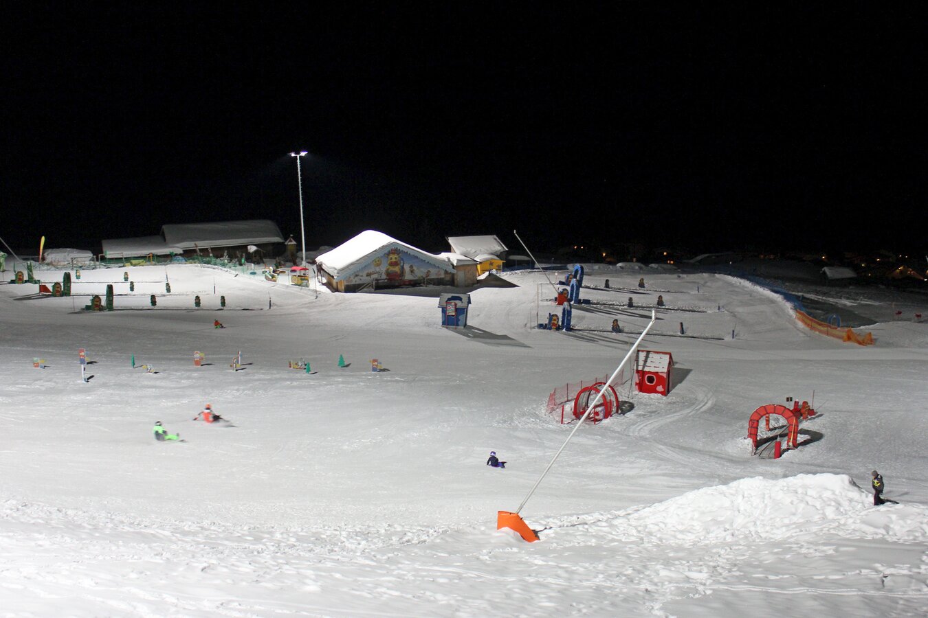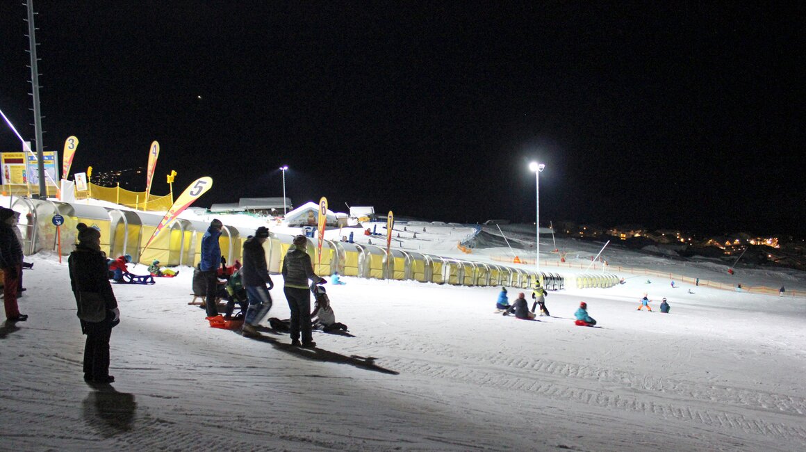 Es ist Dienstagabend. Unsere zwei Kinder, Tobias 10 Jahre und Julia 6 Jahre, meine Frau und ich steigen in Fiss in die Sonnenbahn ein. Beide Kinder haben ihre Skiausrüstung an, meine Frau und ich unsere Winterbekleidung. Wir fahren das kurze Stück von Fiss bis zur Mittelstation und sehen bereits ab der Ausfahrt bei der Bahnstation das hell erleuchtete Bertas Kinderland. Das Tunnel-Förderband läuft und es sind schon die ersten Kinder zu sehen, die mit verschiedenen Funsportgeräten die Piste runtersausen und mit dem Förderband wieder nach oben fahren.