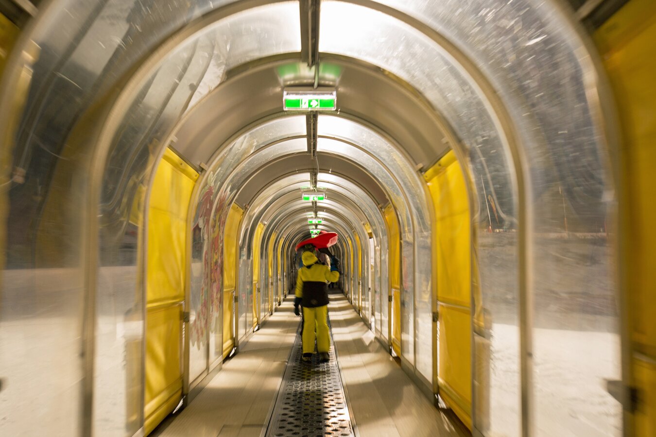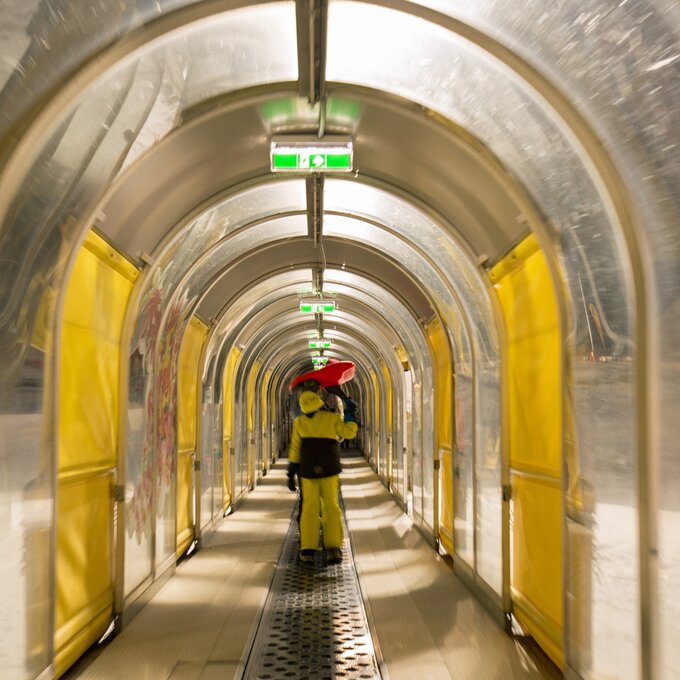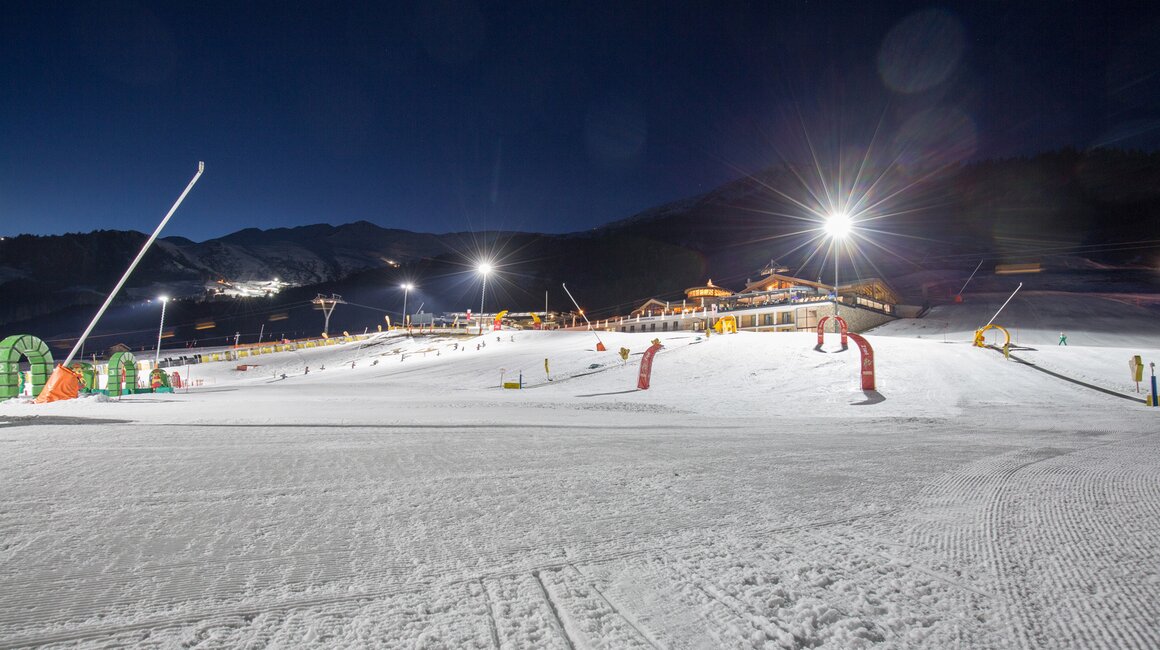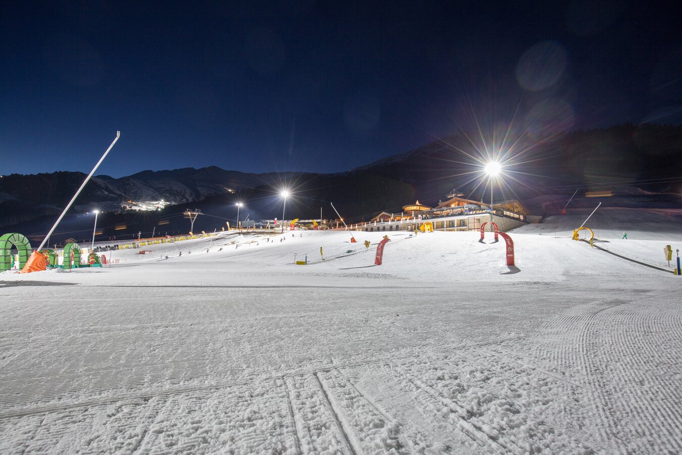 Es ist Dienstagabend. Unsere zwei Kinder, Tobias 10 Jahre und Julia 6 Jahre, meine Frau und ich steigen in Fiss in die Sonnenbahn ein. Beide Kinder haben ihre Skiausrüstung an, meine Frau und ich unsere Winterbekleidung. Wir fahren das kurze Stück von Fiss bis zur Mittelstation und sehen bereits ab der Ausfahrt bei der Bahnstation das hell erleuchtete Bertas Kinderland. Das Tunnel-Förderband läuft und es sind schon die ersten Kinder zu sehen, die mit verschiedenen Funsportgeräten die Piste runtersausen und mit dem Förderband wieder nach oben fahren.