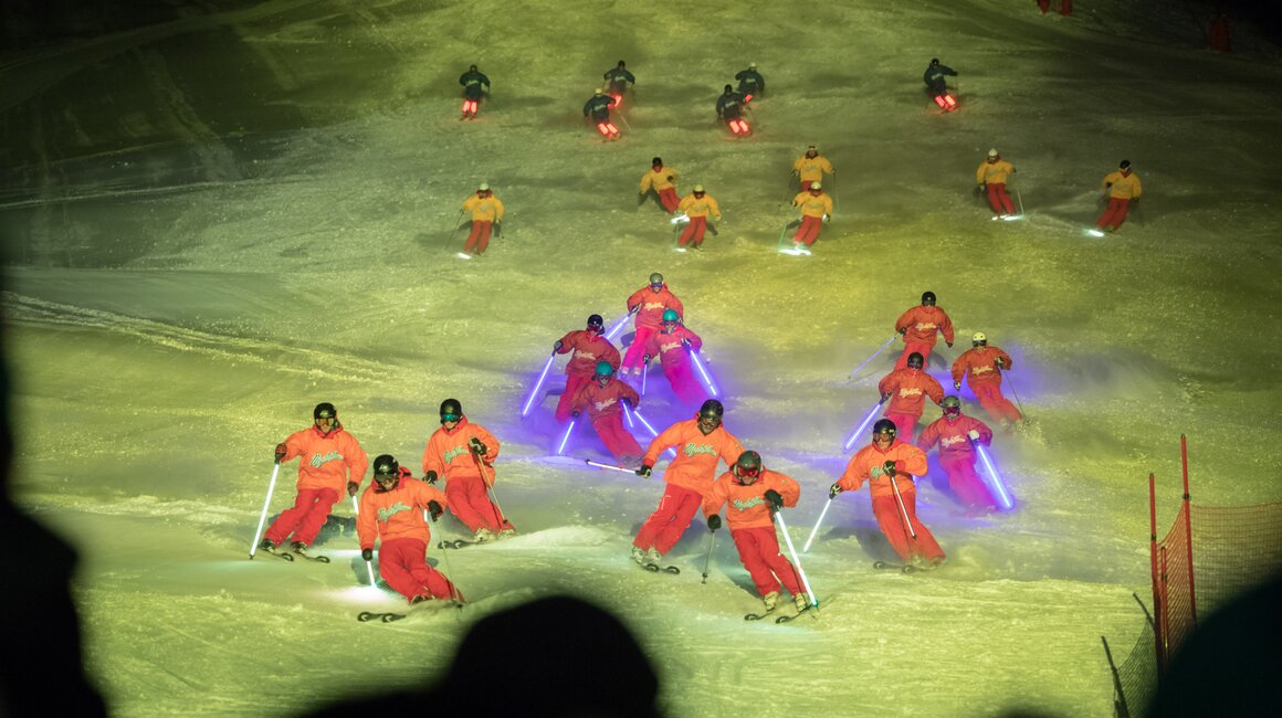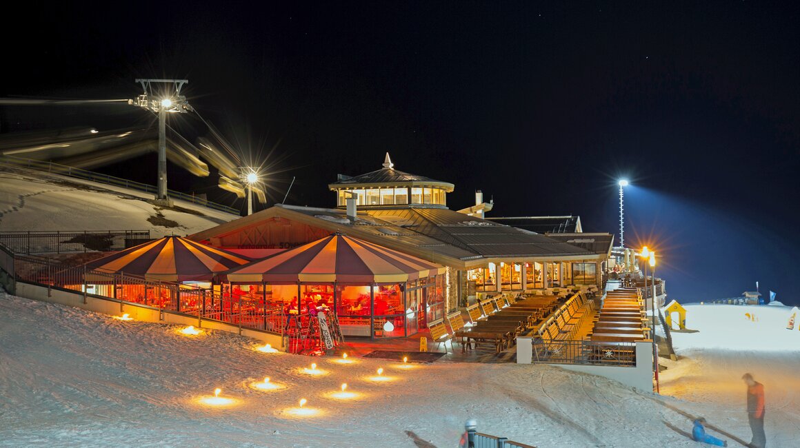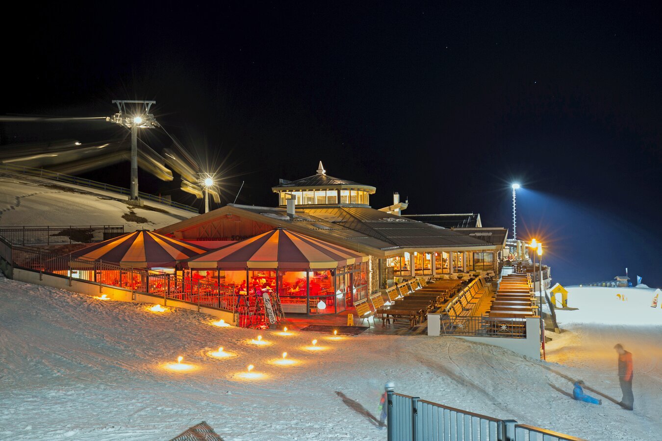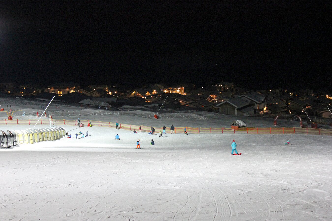 Wir fahren mit der Möseralmbahn nach Fiss zurück, während unsere Kids auf ihren zwei Brettern die bestens beleuchtete Möseralmabfahrt runter fahren. Da sie sich im Skigebiet bestens auskennen und nur diese Abfahrt beleuchtet ist, machen wir uns keine Sorgen. Von der Bahn aus können wir sie immer wieder mal kurz sehen, doch irgendwann haben sie uns doch klar abgehängt.