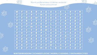 Stopp! Auch für dieses Spiel brauchst du deine Stifte, um gerade Linien zu zeichnen. Während wir in Serfaus-Fiss-Ladis die letzten Schneefelder suchen und nach den ersten Frühlingsblümchen Ausschau halten, haben sich 12 winterliche Wörter in einem Buchstabensalat versteckt. Hilfst du uns, sie zu finden? Die Wörter haben sich dabei mal von oben nach unten, mal von links nach rechts versteckt. Auch ein paar wenige Wörter verbergen sich im Rätsel sogar ganz schön schräg, also diagonal. Knifflig, oder? Aber das schaffst du bestimmt in Windeseile! Los geht's!
