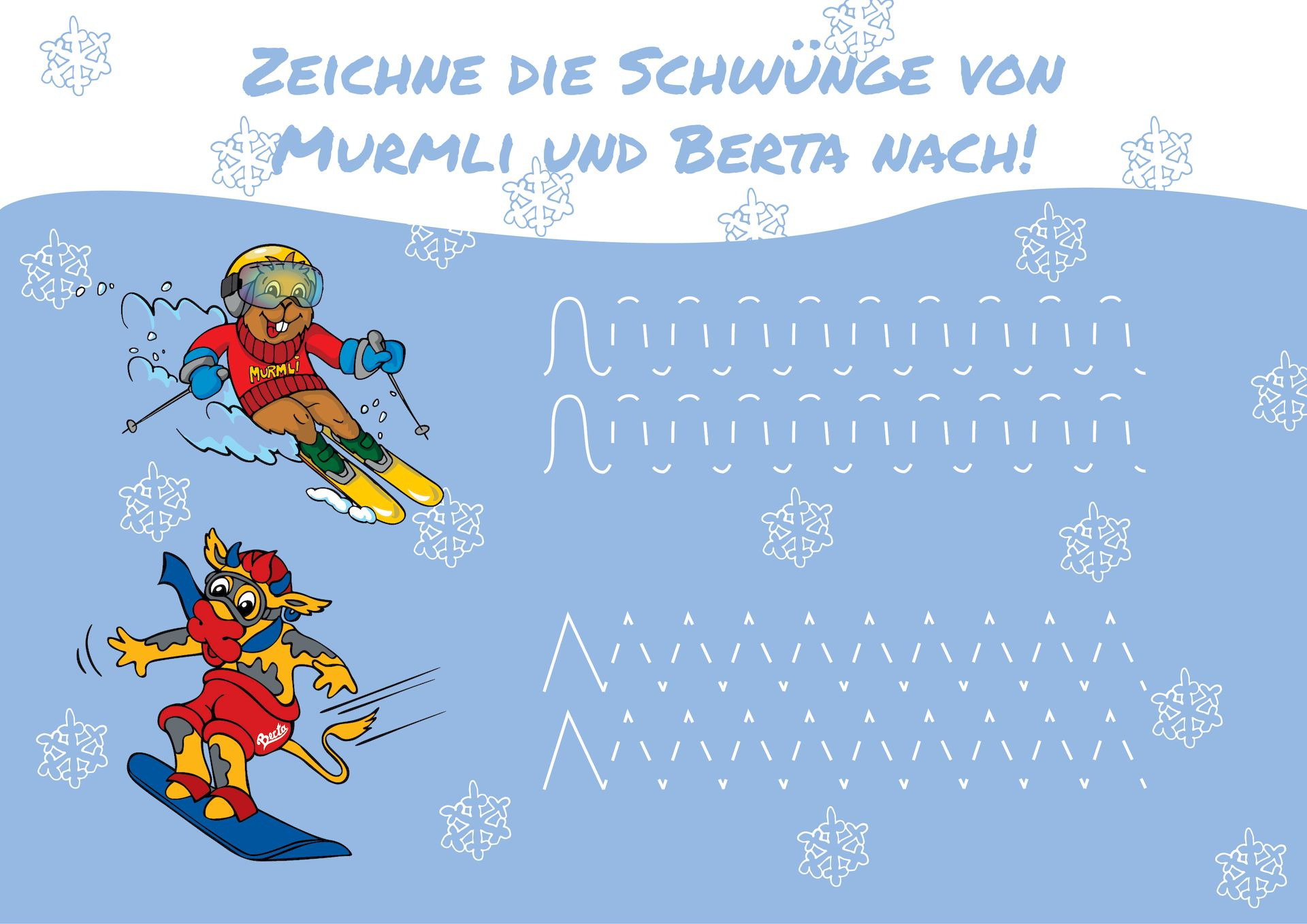 Mit welchen Brettern fährst du am liebsten über den Schnee? Mit nur einem Brett, dem Snowboard, oder doch mit zwei Skiern? Wir haben unsere Schwünge auf den Bergen in Serfaus-Fiss-Ladis gezeichnet, mal rund, mal im Zickzack. Schaffst du es, unsere letzten Winterschwünge mit deinem Lieblingsstift nachzuzeichnen? Wir drücken dir unsere flauschigen Daumen!