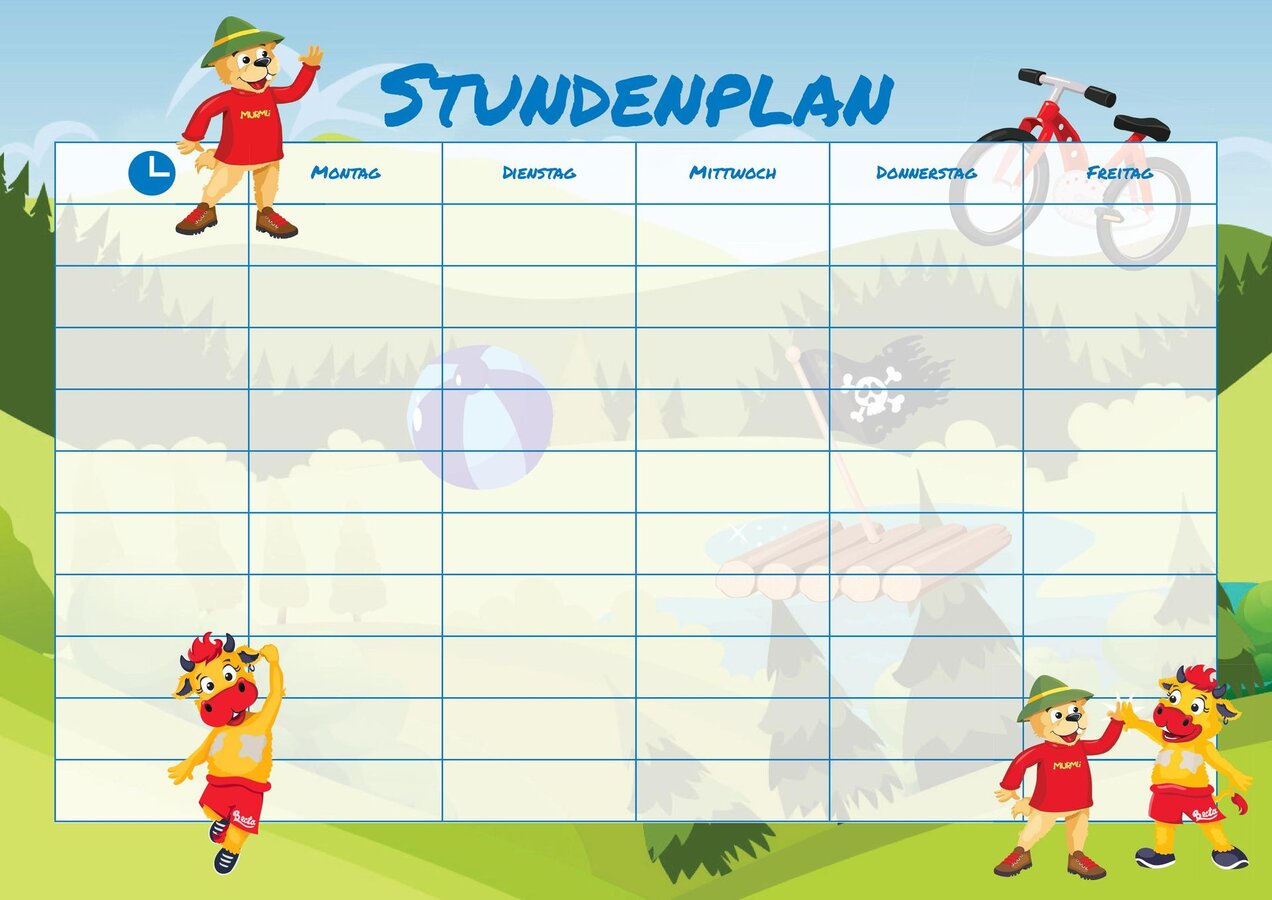 Den bunten Stundenplan kannst du ganz einfach ausdrucken und gleich ausfüllen. Mama und Papa helfen dir bestimmt dabei. Mit Murmli und Berta macht der Schulstart doch gleich doppelt so viel Spaß! Welches Maskottchen ist dein Liebling?