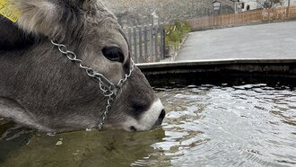 Liter Milch. So viel Milch gibt eine durchschnittliche Milchleistungskuh bei guter Versorgung im Jahr. Rinder werden in drei Leistungsgruppen eingeteilt. Zu den Milchleistungsrindern zählt beispielsweise die Rasse "Holstein". Diese werden ausschließlich für die Milchgewinnung gehalten. Zu den Fleischleistungsrindern zählt unter anderem die Rasse "Angus". Diese werden nur für die Fleischproduktion gezüchtet. Aus diesen beiden Gruppen gibt es noch eine Kombination – die Zweinutzungsrassen. Diese haben eine gute Milch- sowie eine ordentliche Fleischleistung. Das Tiroler Grauvieh, das in Serfaus-Fiss-Ladis so beliebt ist, ist ein mittelrahmiges Zweinutzungsrind.