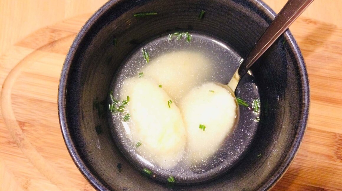Die Butter flaumig rühren, das Ei und den Grieß dazugeben. Mit Salz, Muskat und Pfeffer würzen. Die Masse 20 Minuten ziehen lassen. Mit zwei nassen Teelöffeln „Nockerl“ formen und auf ein nasses Brett legen. Die Suppe aufkochen und alle Nockerl gleichzeitig hineingeben. Die Nockerl zugedeckt 20 Minuten schwach kochen und danach 20 Minuten ziehen lassen. Mit frischen Kräutern servieren.
