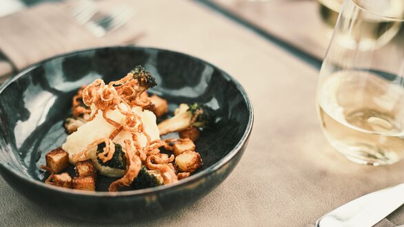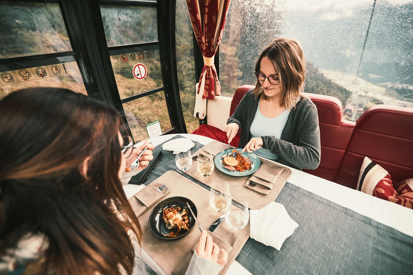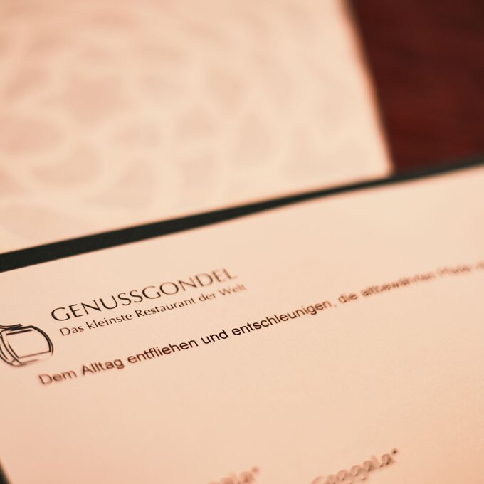 Wir entschieden uns für das 6-Gänge-Mittagsmenü in der schwarzen Genussgondel. Direkt bei der Buchung dieses exklusiven Angebots konnten wir aus MEHREREN MENÜS wählen.