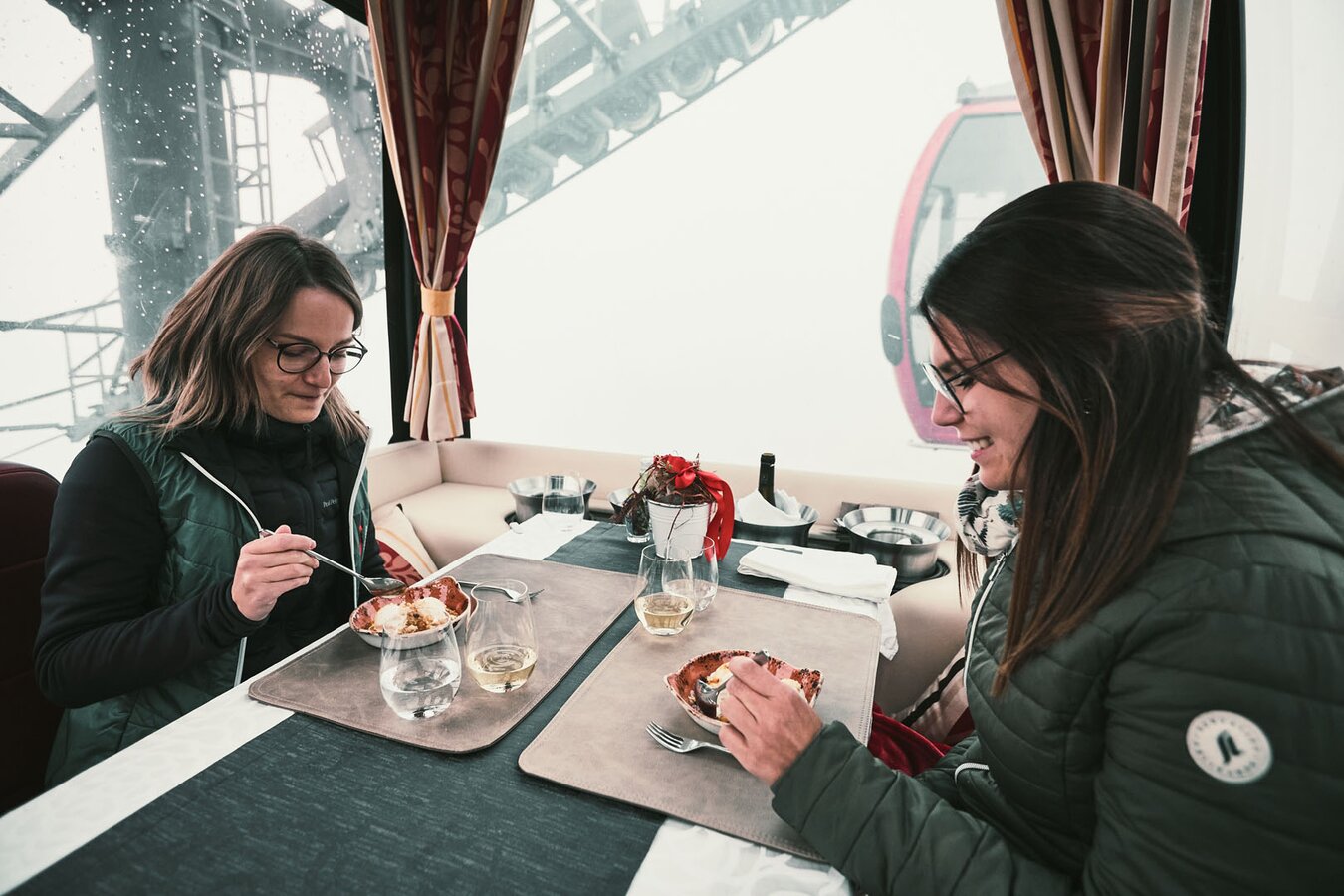- 2 KÖCHE die Gäste der Genussgondel & des Crystal Cubes mit ihrer Küche begeistern. Zudem sorgen 2 KELLNER für das Wohl unserer Gäste.