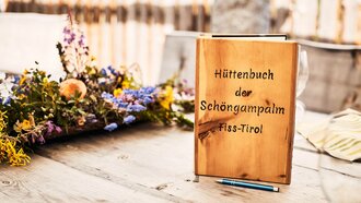 Nachdem wir bestens gespeist und getrunken haben, steht nun ein Eintrag ins Hüttenbuch der schönen Alm an. Da müssen wir nicht viel überlegen, was wir hineinkritzeln.