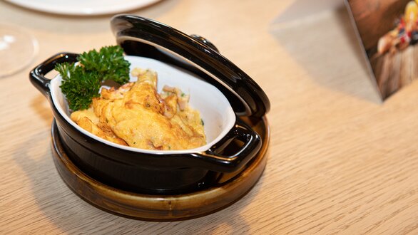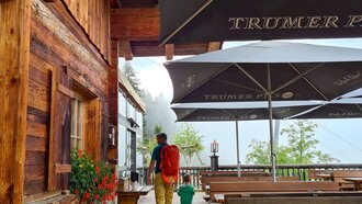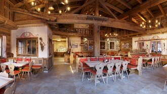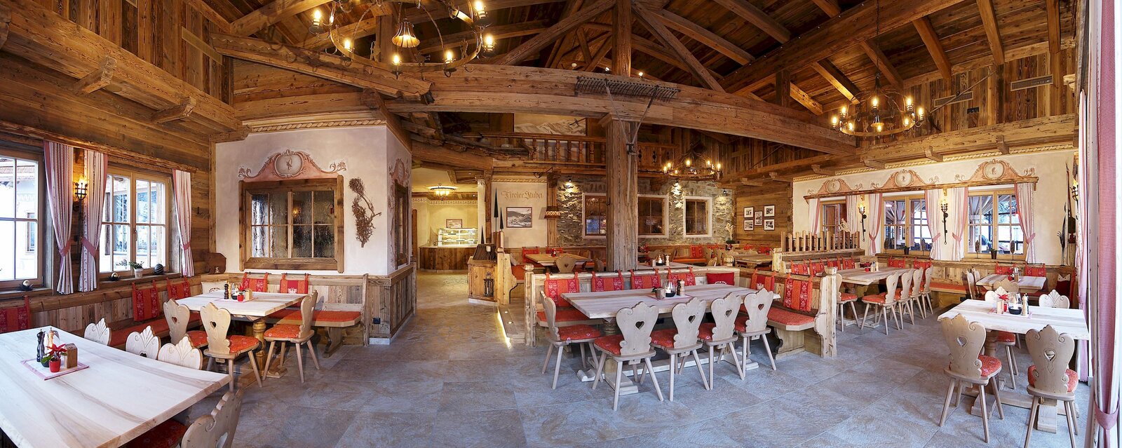 An diesem Sommertag ging es für uns schnurstracks ins urige Bergrestaurant. Dort wurden wir mit einem herzlichen „GUTEN MORGEN. Keamats lei icha“ begrüßt. Unser Blick fiel sofort auf die RUSTIKALE Einrichtung. Alte Fotografien, Holz und Trophäen, soweit das Auge reicht. Der hohe Raum mit vielen kleine Tischen, umzingelt von hübschen BAUERNSTÜHLEN und gemütlichen Nischen war zwar groß, wirkte aber dennoch gemütlich und nicht überdimensioniert. Der HÜTTENCHARAKTER war klar zu spüren. Eine Hütte ganz nach meinem Geschmack.
