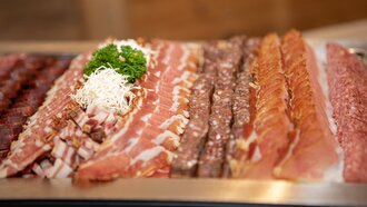 Zudem wurden wir mit WURST- UND SPECKSPEZIALITÄTEN aus hauseigener Produktion verwöhnt. In einer kleinen VITRINE direkt beim Restauranteingang wurden jene Produkte sogar zum Kauf angeboten. Wir konnten nicht anders und kauften im Anschluss etwas vom Leithe’s Feinstes ein: für unsere Liebsten zuhause und für uns natürlich.
