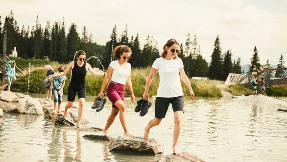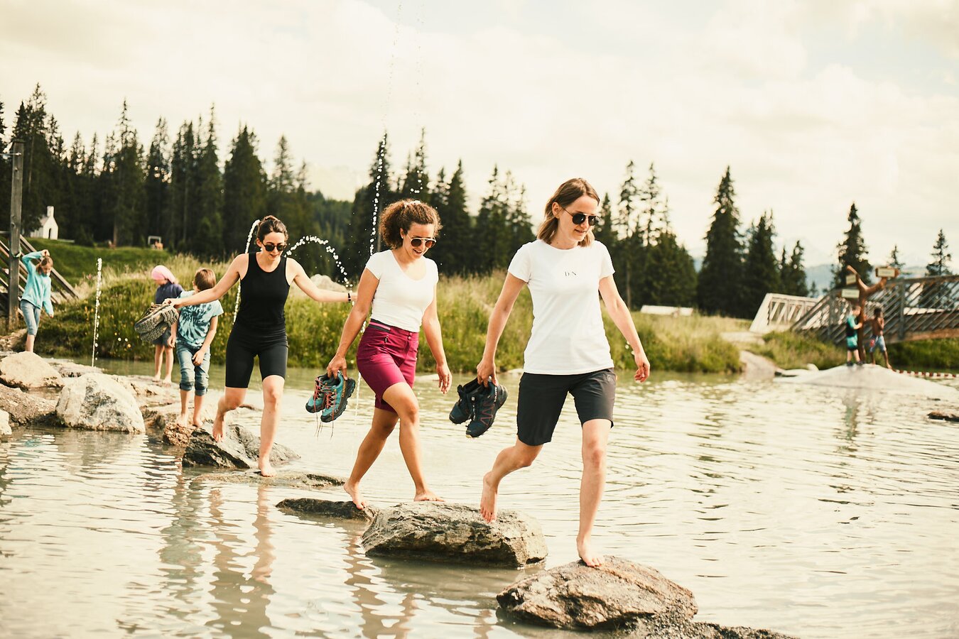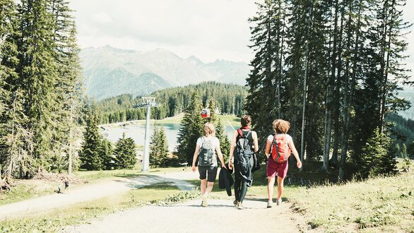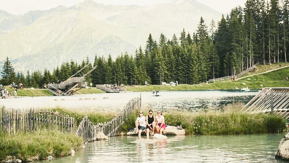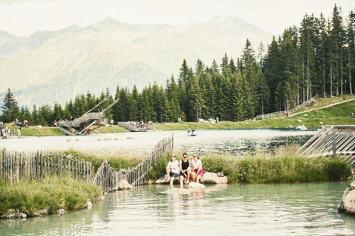 Bei einer gemütlichen Gondelfahrt zurück zur Bergstation der Komperdellbahn träumten wir noch unserem exquisiten Mittagessen nach, bevor wir wieder die Schuhe enger schnürten und weiter zum idyllischen Högsee wanderten. Den Sprung ins kühle Nass wagten wir zwar nicht, aber unsere müden Füße und Beine kühlten wir im See ab.