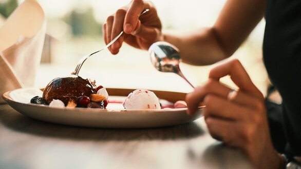 Anschließend suchten wir uns ein feines Plätzchen auf der sonnigen Terrasse des wunderschön gelegenen Restaurants Seealm Hög. Als krönenden Abschluss unserer kulinarischen Wanderung wurde uns eine unglaublich leckere Nachspeise namens Schwarzwälder Kirsch aufgetischt. Von der kreativen Interpretation dieses Klassikers träume ich immer noch. Die verschiedenen Gänge des Überraschungsmenüs sind wirklich etwas ganz Besonderes.