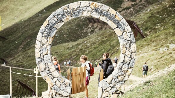 Gestärkt und von der Sonne aufgewärmt, legten wir los und wanderten über den kinderwagentauglichen und stets leicht abfallenden Quellenweg 5,4 km weit bis zur Bergstation Komperdell. Natürlich durfte da und dort eine Rast nicht fehlen. Bei unseren kurzen Verschnaufpausen genossen wir das wunderbare Bergpanorama und tranken herrlich erfrischendes Quellwasser.