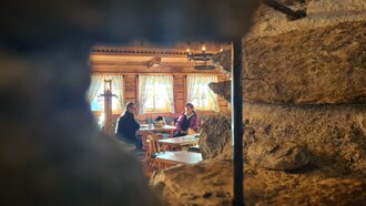 Sieh dich um! Das, was dieses Bergrestaurant ausmacht, ist, dass es unglaublich viel Gemütlichkeit ausstrahlt. Hier ist es einfach HEIMELIG. Uns war es wichtig, dass es trotz der Größe den Hüttencharakter nicht verliert. Zuerst hatten wir eine große Halle. Wir entschieden uns dann, diese in kleine und größere Stuben zu unterteilen. Unsere Gäste sollen sich in den NISCHEN UND SITZECKEN wohlfühlen. Das Holz für das Lassida stammt dabei von alten STADELN. Sie wurden abgetragen und hier verbaut.