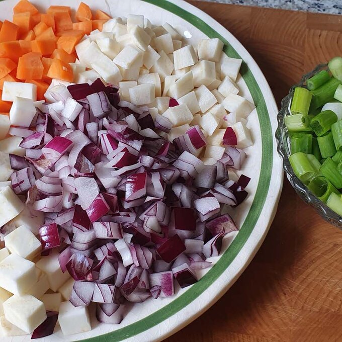 Salat ca. 30 min, Hauptgang + Beilagen ca. 90 min, Dessert ca. 30 min