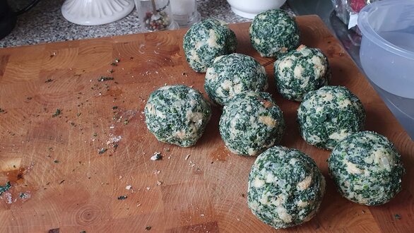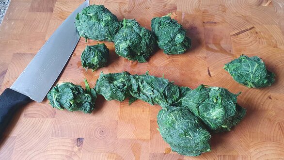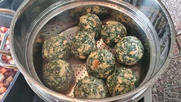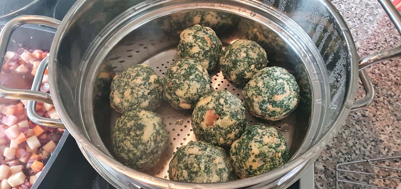 Brennnesselknödel sind ein wahres Highlight in der Sommerküche. Sie sind reich an Antioxidantien, Magnesium, Kalzium, Eisen, Eiweiß sowie Vitamin A und C (ca. doppelt so viel Vitamin C wie Orangen). Zum Glück wachsen Brennnesseln recht üppig bei uns. Du findest sie an schattigen Stellen im Wald. Tipp: Nicht direkt an der Straße nehmen, sondern lieber abseits suchen und nicht zu große Pflanzen pflücken. Mutige können die Brennnesselstängel auch problemlos ohne Handschuhe pflücken. Vorsichtig Stängel mit Daumen und Zeigefinger kraftvoll abreißen, umdrehen und sanft von oben (Stielende) nach unten streichen. So brechen die brennenden Nesseln und können dir nichts mehr anhaben. Gleich vor Ort vom Stiel befreien.