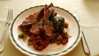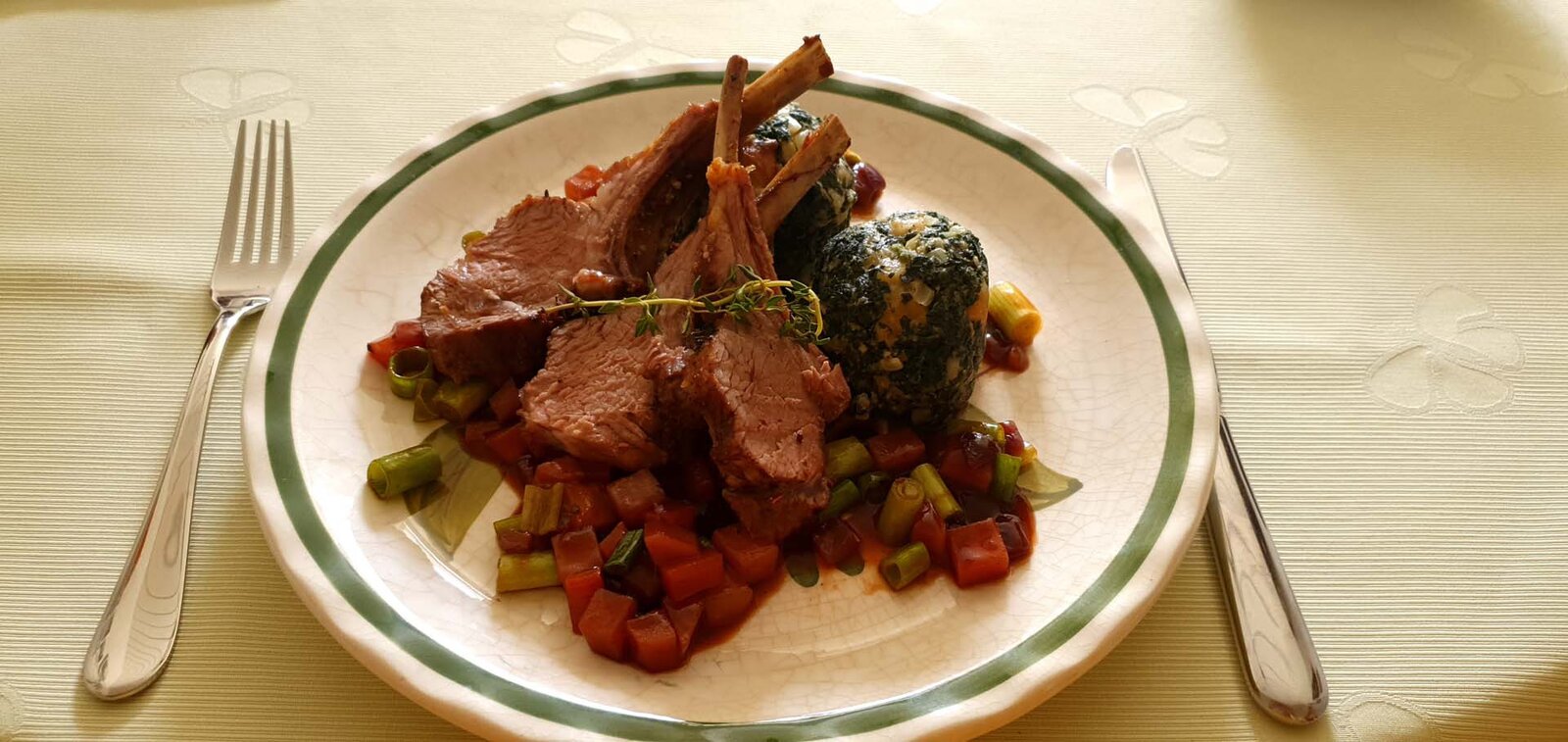Rezepttipp aus der Region - Lammkarree mit Gemüse und Brennnesselknödel