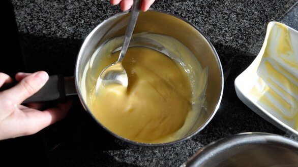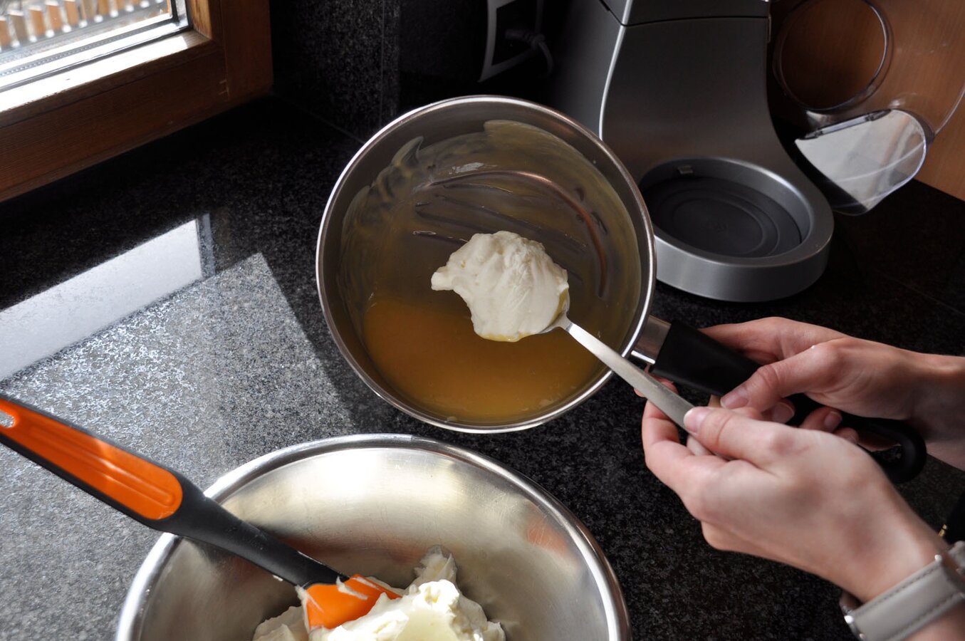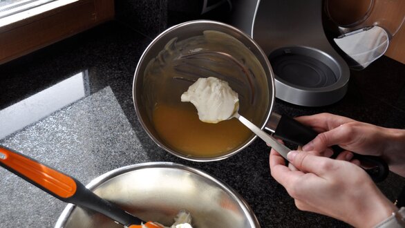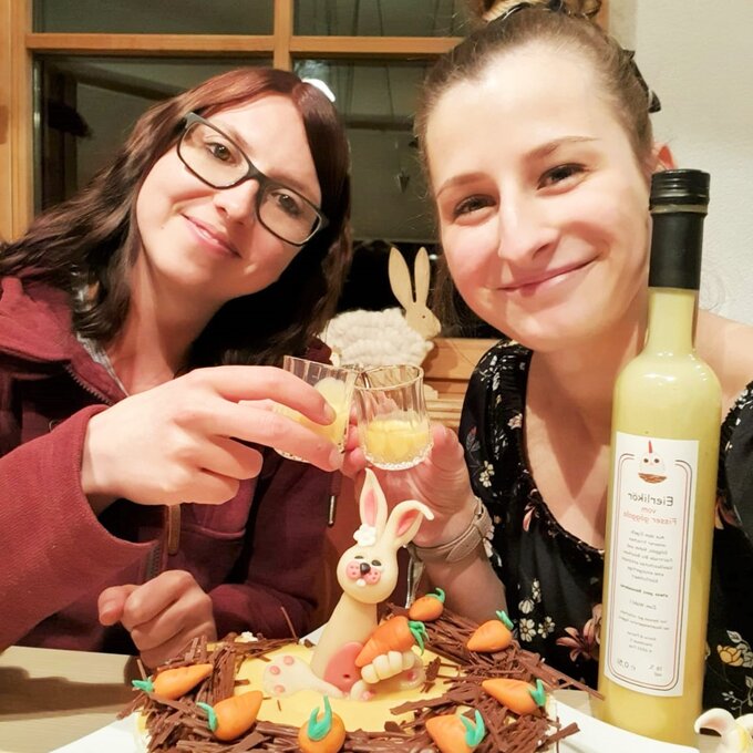 Pssst... 2 Stamperla für den Eierlikör dürfen keinesfalls fehlen. Schließlich will der Likör vor seiner Weiterverarbeitung gekostet werden. Den Trinktest hat er schon mal bestanden. Wie schmeckt er dir?