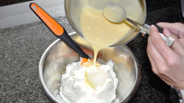 Statt Eierlikör kannst du beim Spiegel und der Sahne natürlich auch pürierte Früchte verwenden. Ob Mango oder Himbeeren, du bist der Boss.