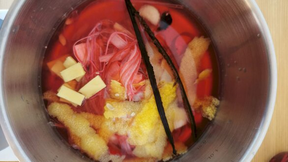 - Den Rhabarber wild mittig mithilfe eines Backrings platzieren.