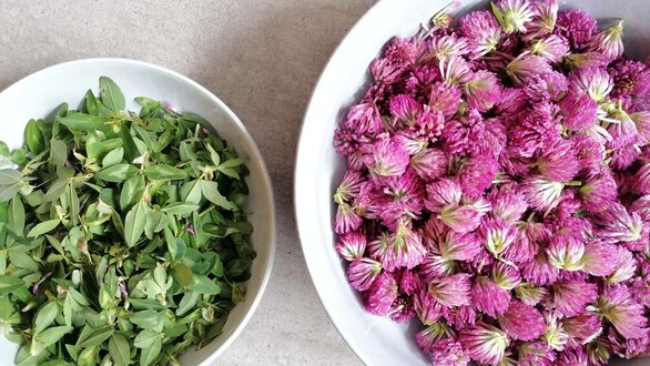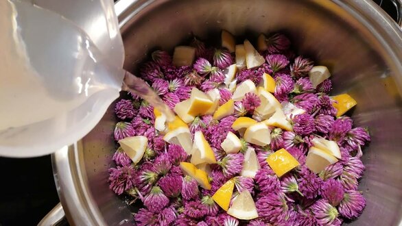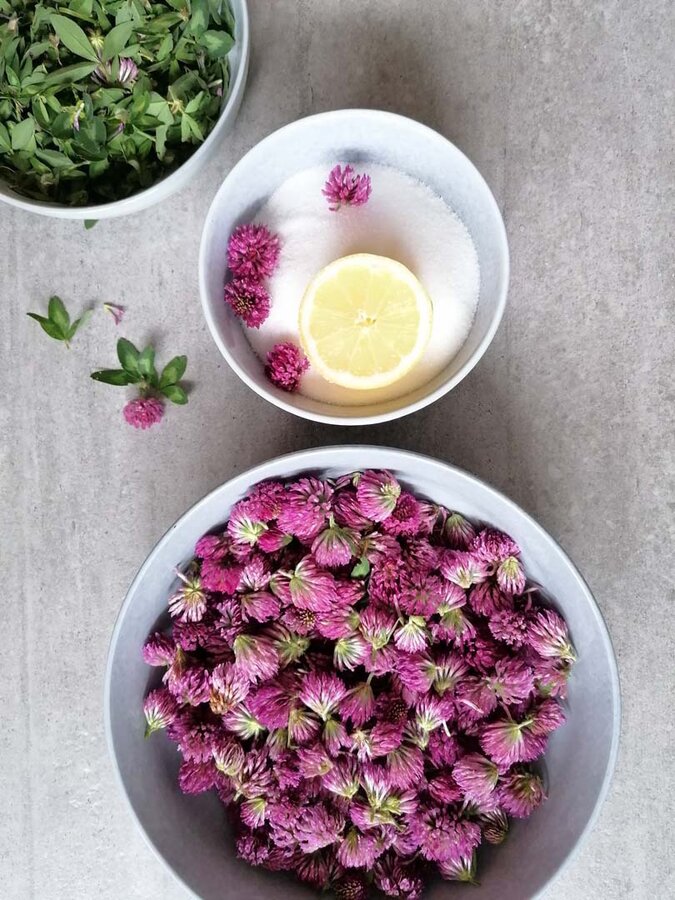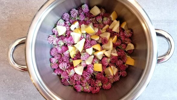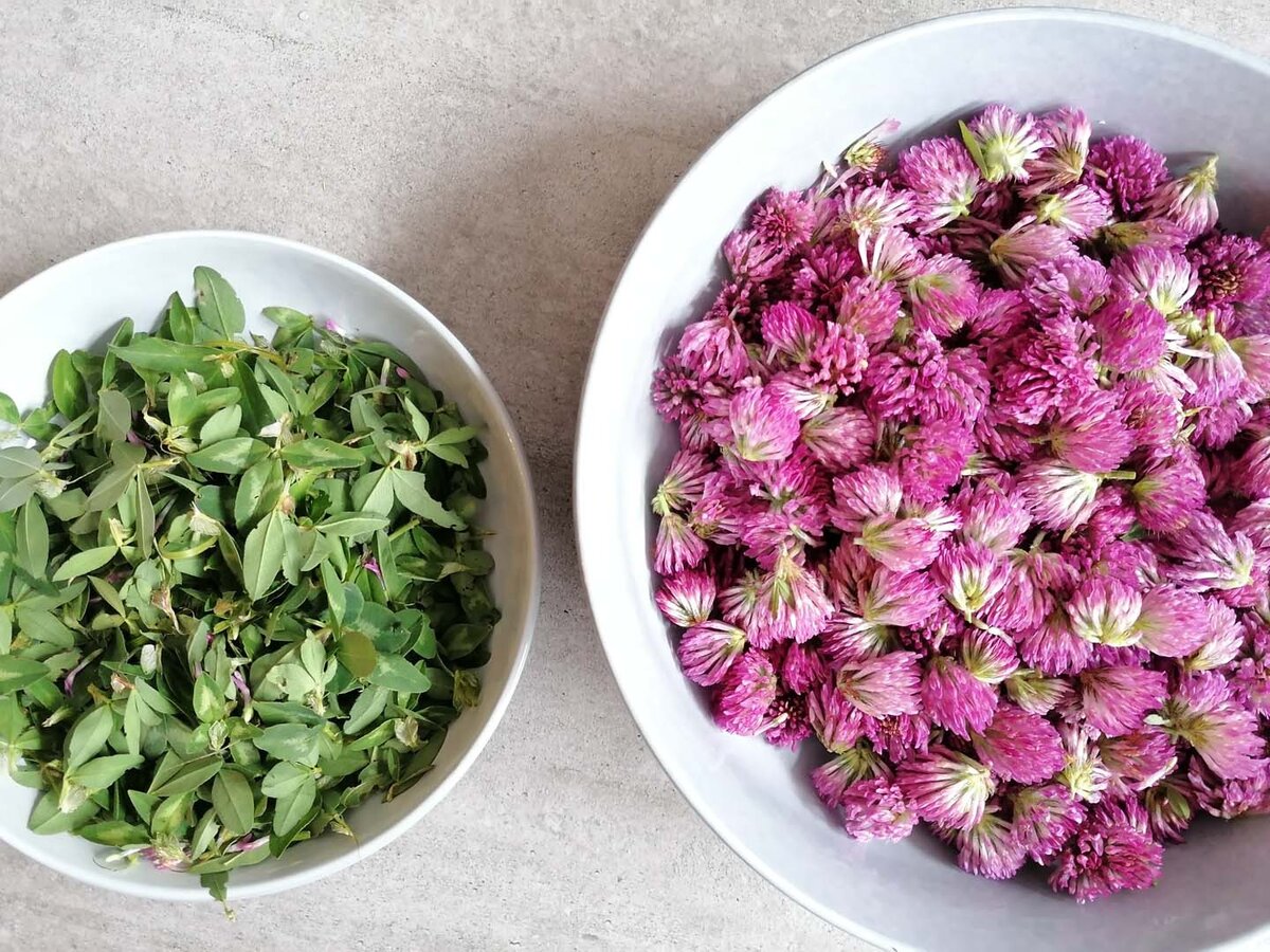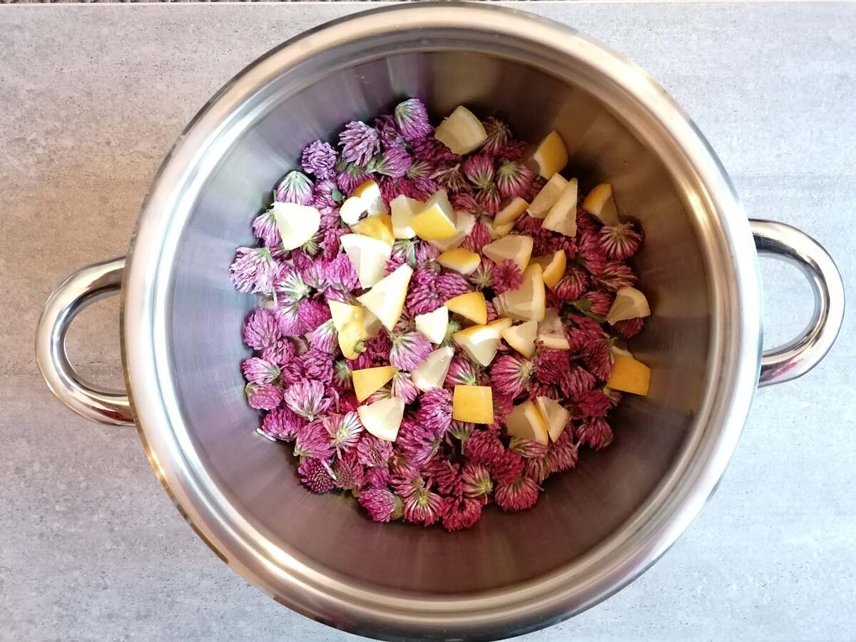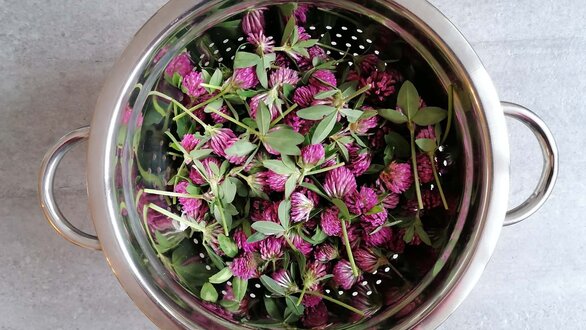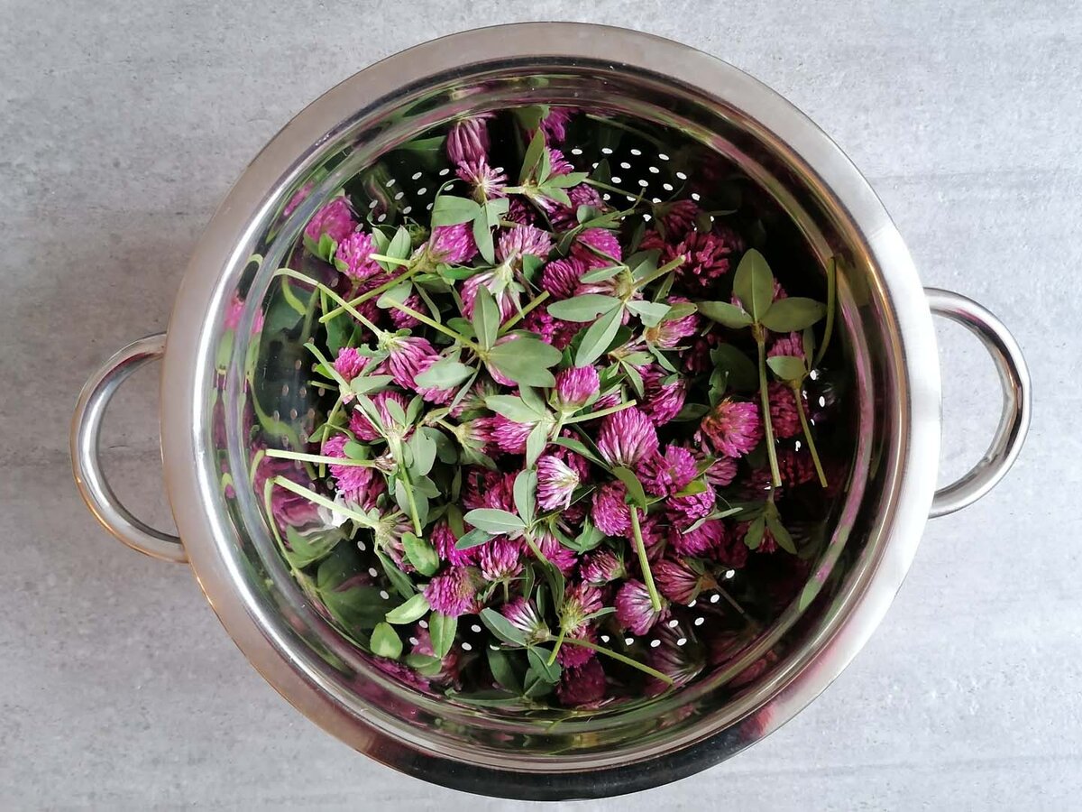 Für den Sirup (ergibt etwa 1,5 l) brauchst du nur wenige Zutaten. Den Wiesenklee findest du zwischen vielen anderen Sommerblühern versteckt. Die rosa gefärbten Blüten sind dabei aber kaum zu übersehen. Mach doch einen gemütlich Spaziergang mit deinen Liebsten und zaubere im Anschluss einen leckeren Sirup. Besonders Kinder lieben es, den Großen beim Sammeln der Blüten zu helfen.