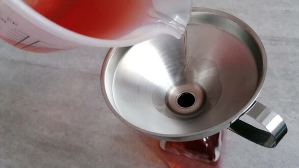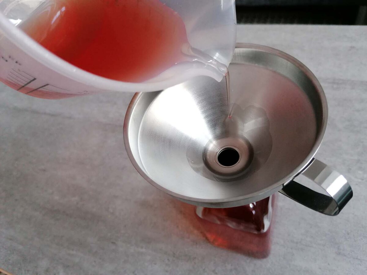Sodawasser in ein Glas mit Eiswürfeln geben. Einen Schuss Rotkleesirup hinzufügen und deine Lieblings-Waldbeeren darin versenken. Cool, wie sich dein Sommergetränk farblich vermischt, oder?