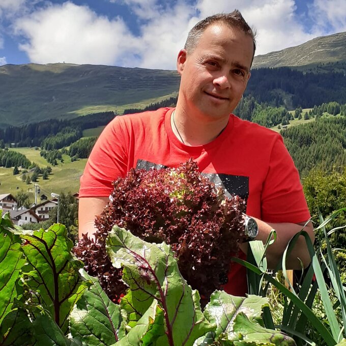 Sein Handwerk erlernte der Fisser in den 90er-Jahren in einer Zwei-Hauben-Küche. Er hat in seiner Heimatgemeinde eine eigene Familie gegründet und ist auch beruflich seit fast zwei Jahrzehnten mit der Region verbunden. Bereits seit 17 Saisonen ist er Küchenchef im Restaurant Bergrestaurant Möseralm. Seit nunmehr sechs Wintersaison leitet er das Familienrestaurant Sonnenburg und schwingt in den Sommermonaten das Zepter im Crystal Cube am Zwölferkopf. Es stimmt ihn immer wieder glücklich, wenn den Besuchern des gläsernen Restaurants beim Eintreten der Atem vor Begeisterung stockt. Zufriedene Gäste sind seine Passion. "Dann woas i, für was i arbeit", so Peter. Der sympathische Einheimische ist glücklich mit seiner Frau Diana verheiratet und stolzer Vater von seinen drei Musketieren Julian, Simon und Jannik Paul. Mit seiner Frau und seiner Rasselbande verbringt er gerne gemeinsame Quality-Time in der Küche und schätzt die Verwendung heimischer Produkte. Ein Muss im Sommer: Kräuter und allerlei Gemüse und Obst selbst anpflanzen. Neben klassischen Gemüsesorten züchtet er auch mal Exoten wie Physalis oder Melonen in seinem Wohlfühlgarten. Kreativität beweist er beim Kürbisschnitzen. Kurzerhand wird bei ihm nämlich ein langweiliger Kürbis in ein cooles Piratenschiff verwandelt. Da staunt besonders Jannik Paul, sein jüngster Sohn.