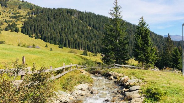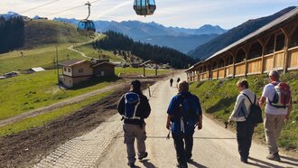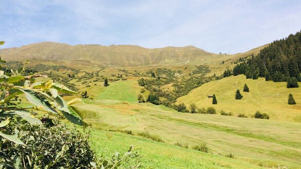 Die Sonne kitzelte unsere Nasen, als wir bei der Bergstation der Komperdellbahn auf unsere Wanderbegleitung warteten. Pünktlich um halb elf schüttelte uns der gut gelaunte Mike, Küchenchef des Leithe Wirtes und Ideengeber der Schmankerl-Wanderung (gemeinsam mit Restaurantleiter Peter Mangott), die Hand und wir machten uns sogleich auf den Weg Richtung Leithe Wirt. Unsere Mägen knurrten bereits. Hungrig sollten wir nach dieser kulinarischen Wanderung jedoch mit Sicherheit nicht bleiben. Dafür sorgte Mike und sein Gehilfe Florin, der die Köstlichkeiten zu unseren Kulinarik-Stopps per Vierrad lenkte.