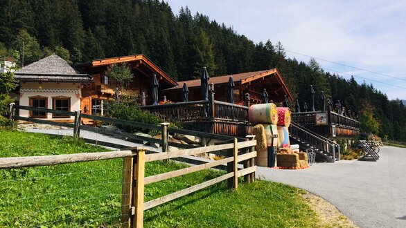 Nach nur wenigen Schritten erreichten wir unseren ersten Stopp: die Komperdellalpe. Der erste Teil unserer Wanderung ist übrigens der beliebte kinderwagentaugliche Panorama-Genussweg, auf dem du im Sommer von Serfaus bis nach Ladis wandern kannst (12,68 km, Gehzeit: 4 Std.). Im Winter ist eine Wanderung zwischen Komperdell und Möseralm möglich (5,24 km, Gehzeit: 1 h 15 min).
