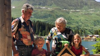 Ich bin von klein auf gerne data-cke-saved-href="/de/Sommerurlaub/Wandern">gewandert. Mit Papa bin ich schon mit sieben Jahren auf allen Serfauser Gipfeln gestanden. Schon dazumal hat mir das sehr viel gebracht, mit Mama und Papa wandern zu gehen, ihnen zuzuhören, wie es früher beim Hüten war, die Namen der verschiedenen Ecken, Scharten und Gipfel zu lernen. Das Gebiet ist einfach wunderschön zum Wandern. Jetzt mit meiner Familie versuchen wir meistens im späten Frühling bzw. Anfang Sommer zu kommen, wenn die Wiesen in voller Blüte stehen. Groß und Klein kann da einfach so viel entdecken, angefangen von der Blumenvielfalt über die Walderdbeeren und Pilze im Wald bis hin zu den pfeifenden „Murmelen“, den Rehen und Gamsen. Das alles ist einfach immer ein wunderbares Erlebnis.