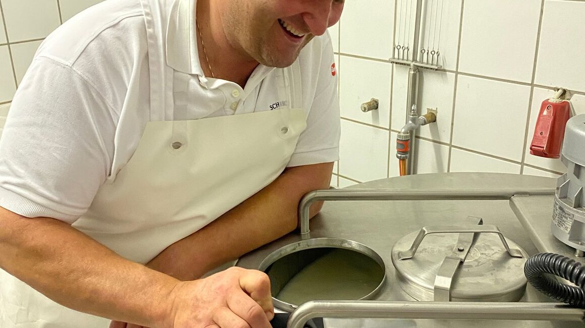 6. Es wird weiter gekäst bis die gewünschte Konsistenz erreicht ist