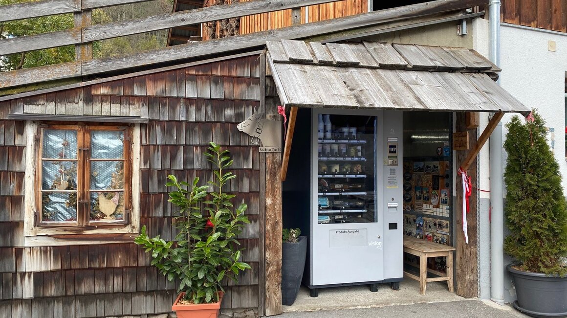 Der Betrieb sowie die Produktpalette sind über die Jahre gewachsen. Hans und Magdalena haben 1996 mit einem halbleeren Stall angefangen und sind heute mit insgesamt 46 Stück Tiroler Grauvieh ausgelastet. “Graue Kiah sei die beschta Mitarbeiterinna, dia’s geit“, erklärt Hans. Der Gasslbauer hat sich durch die Direktvermarktung der eigenen Produkte ein festes Standbein aufgebaut. Der frühere Ab-Hof-Verkauf im Haus wurde durch einen Automaten namens „Regiomat“ mitten in Ladis abgelöst. Durch ihn haben Einheimische und Gäste die Möglichkeit, ihre Produkte 24/7 selbst auszuwählen und zu kaufen. Für die Gäste ist dies ein besonderer Einkauf, denn sie können in dem direkt daneben liegenden Stall das Grauvieh bewundern und wissen, woher die Milch für Joghurt, Käse, Schokolade oder Butter kommt.