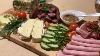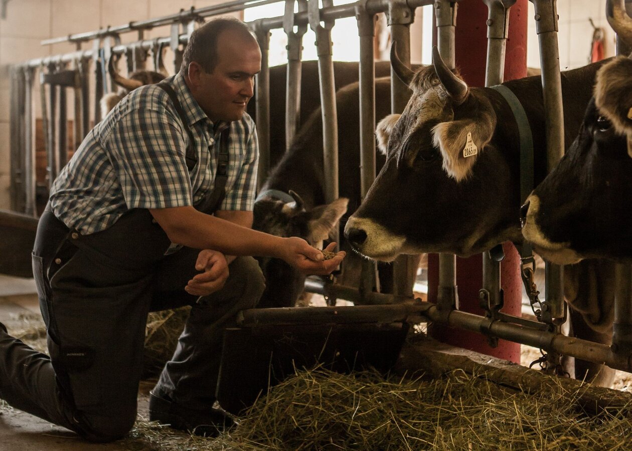 Doch nicht nur der Betrieb ist gewachsen, sondern auch die Aufgaben von Hans. Seine Liebe zum Tiroler Grauvieh ist unendlich, weshalb er dieses Jahr Obmann beim Tiroler Grauviehzuchtverband geworden ist. “Ohne meine Familie geht GAR nichts, bei uns zieht jeder an einem Strang“, sagt Hans stolz. Durch die vielen verschiedenen Aufgaben hält die ganze Familie zusammen und unterstützt sich gegenseitig. Die Zeit rennt, es ist schon wieder Stallzeit und Hans möchte abschließend von unserem Gespräch ein „I bin geara dahuam!“ loswerden. Es ist 17.00 Uhr und es heißt wieder rein in den Stallanzug, Gummistiefel an und ab in den Stall. Derselbe Prozess wie am Morgen steht an. Nach dem Stall wird g‘marendet. Selbstverständlich dürfen dabei die eigenen Produkte nicht fehlen. Eine liebevoll zubereitete Platte lässt keine Wünsche offen.